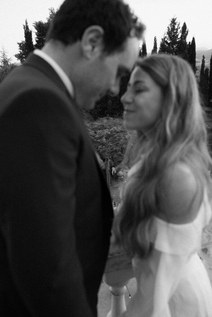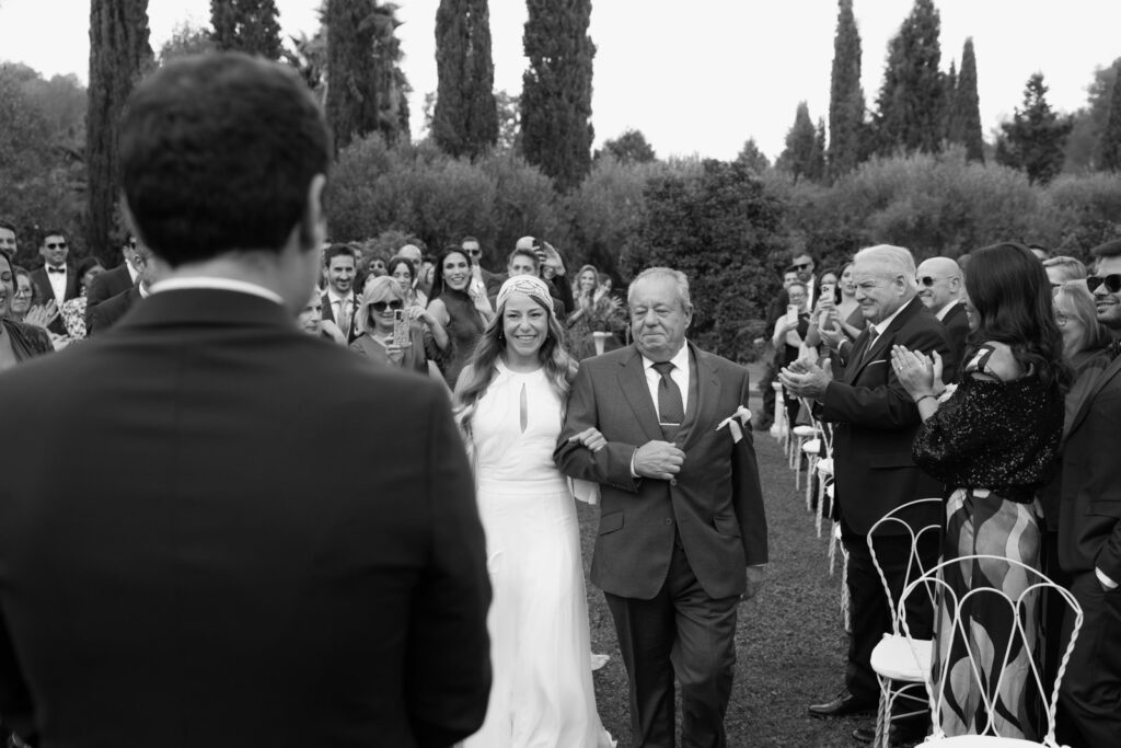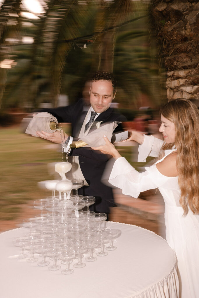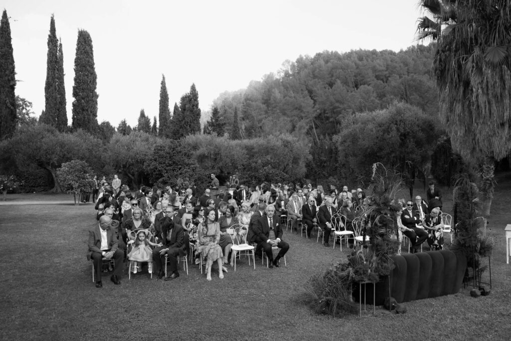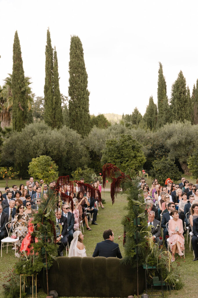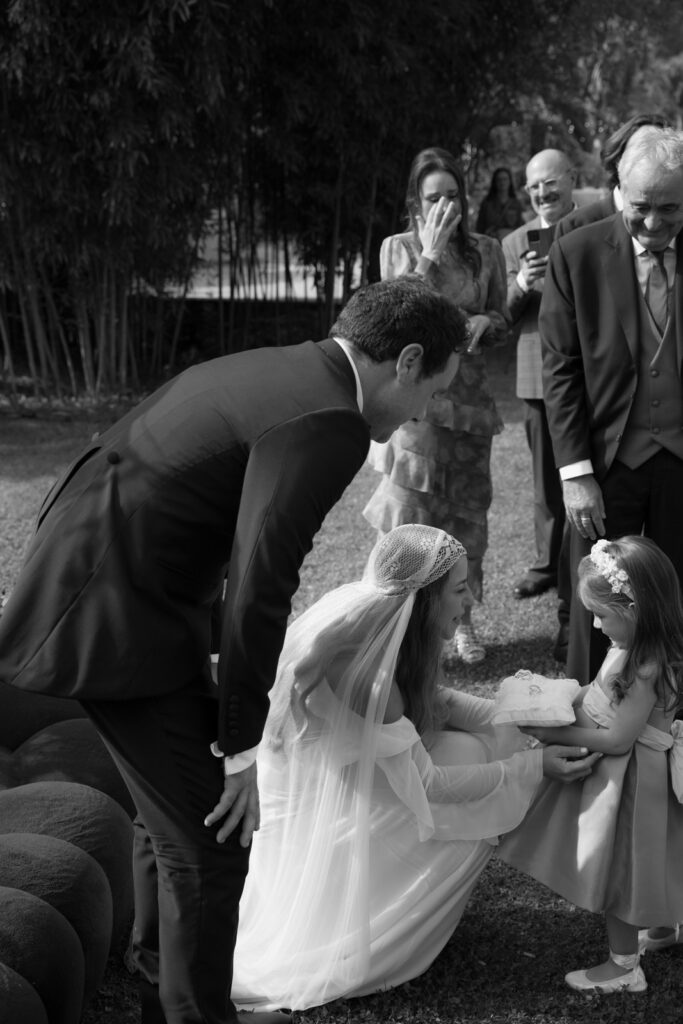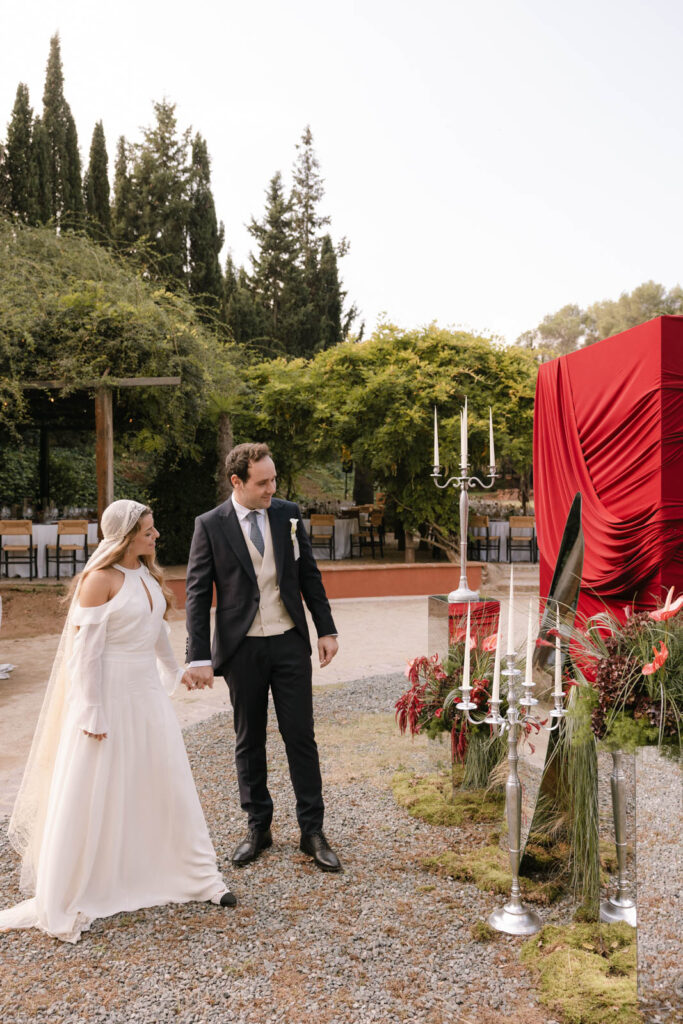 La ceremonia, al aire libre, se construyó desde lo esencial. Miradas que lo decían todo, gestos pequeños que lo hacían grande. Sin artificios. Sin necesidad de añadir nada más. El entorno, la arquitectura y las personas encontraron un equilibrio natural.
