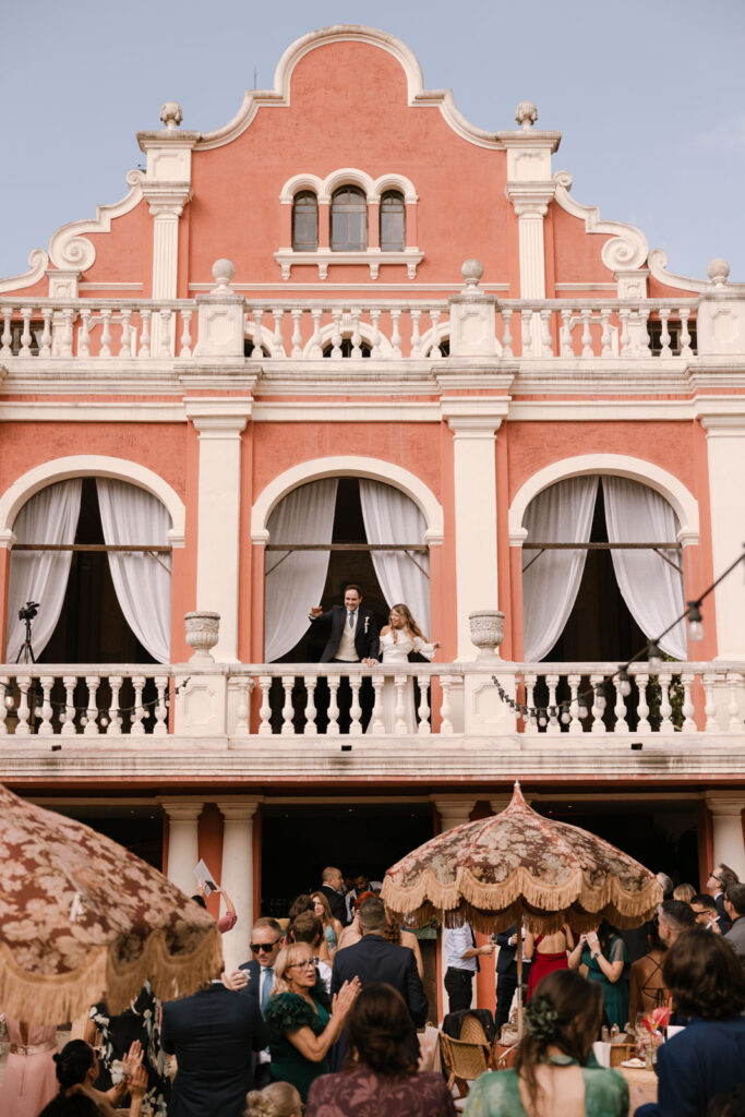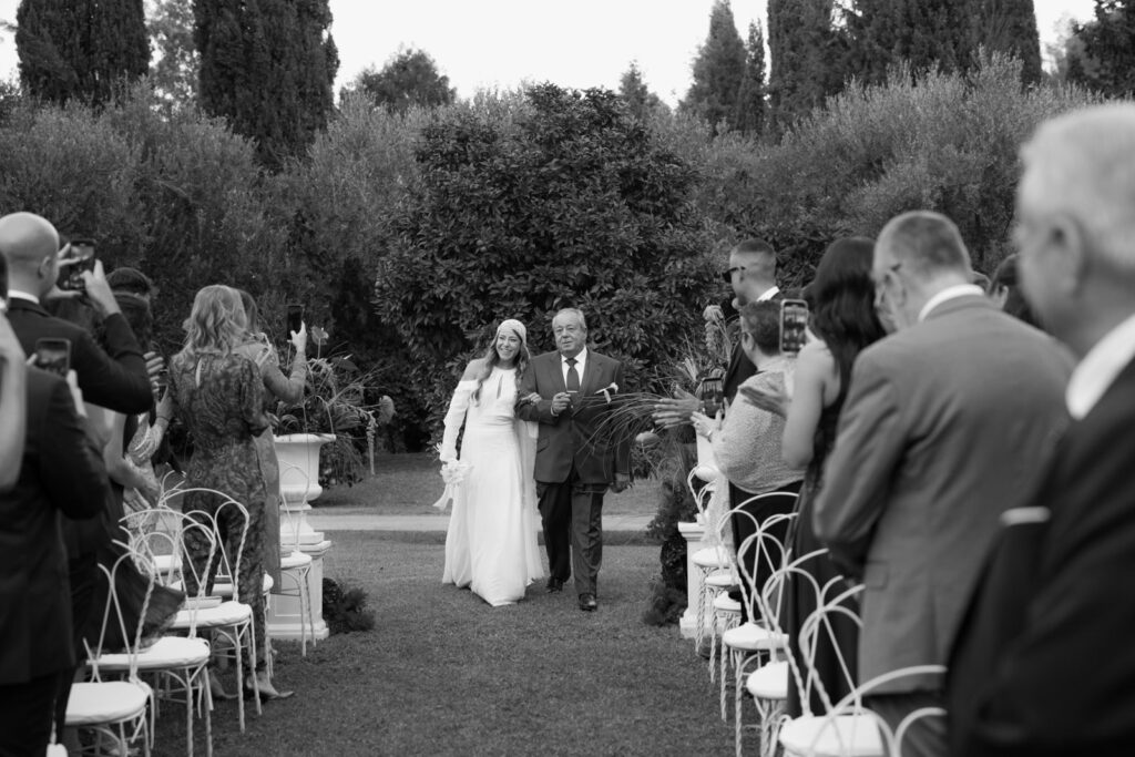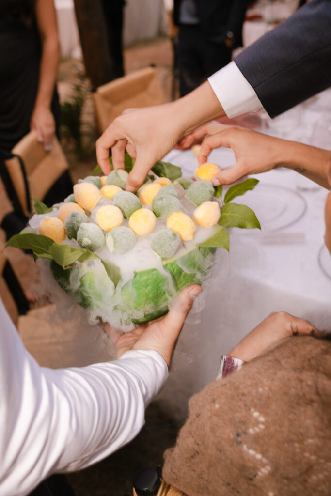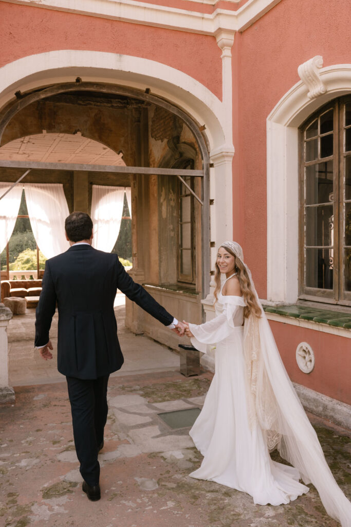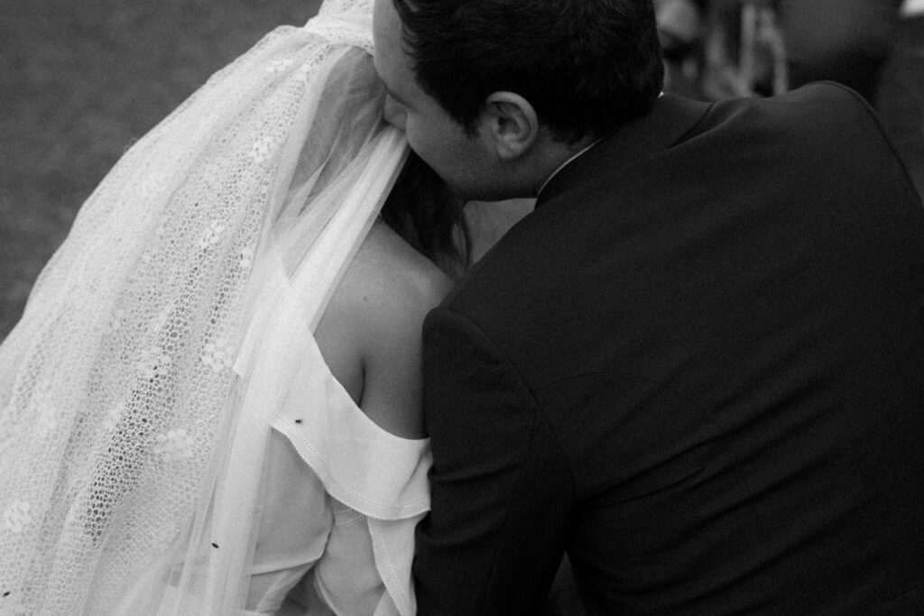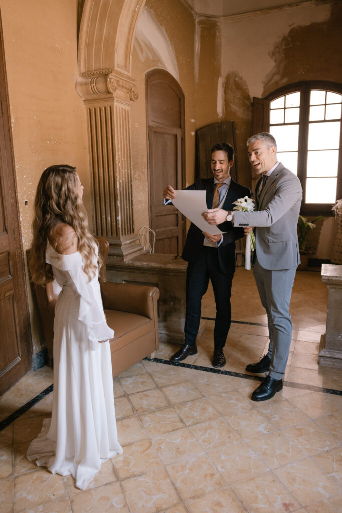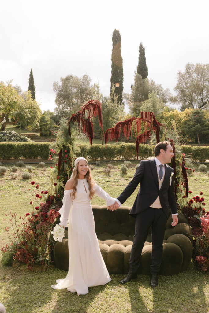 La ceremonia, al aire libre, se construyó desde lo esencial. Miradas que lo decían todo, gestos pequeños que lo hacían grande. Sin artificios. Sin necesidad de añadir nada más. El entorno, la arquitectura y las personas encontraron un equilibrio natural.