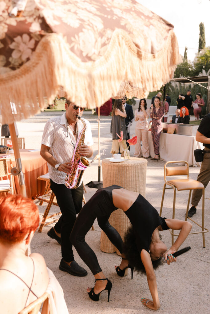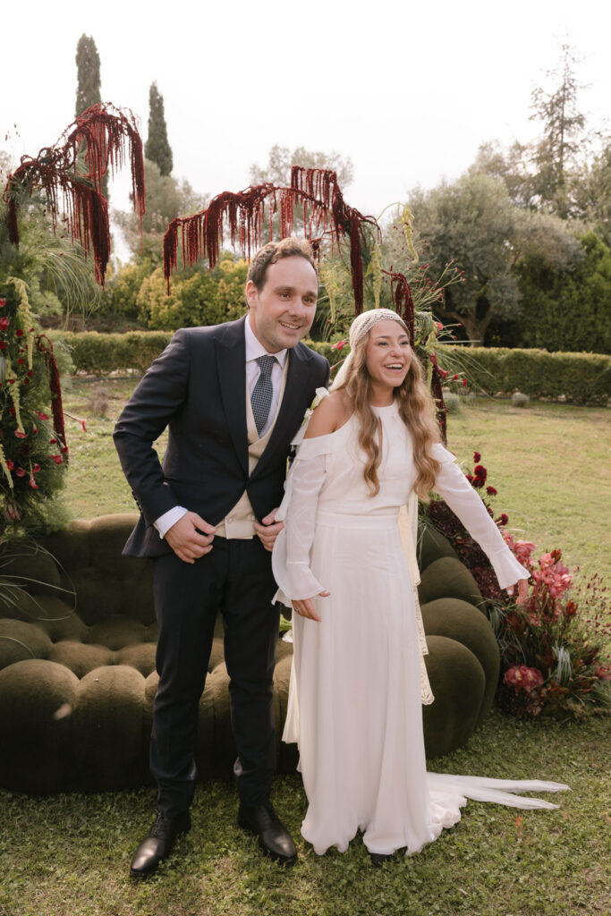 La luz fue la gran protagonista. Suave, cálida, envolviendo cada momento sin prisa. Ari apareció con un vestido de Teresa Helbig que hablaba por sí solo: delicado, con carácter y absolutamente coherente con todo lo que se estaba viviendo. No era solo una elección estética, era una forma de estar.