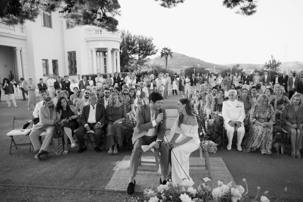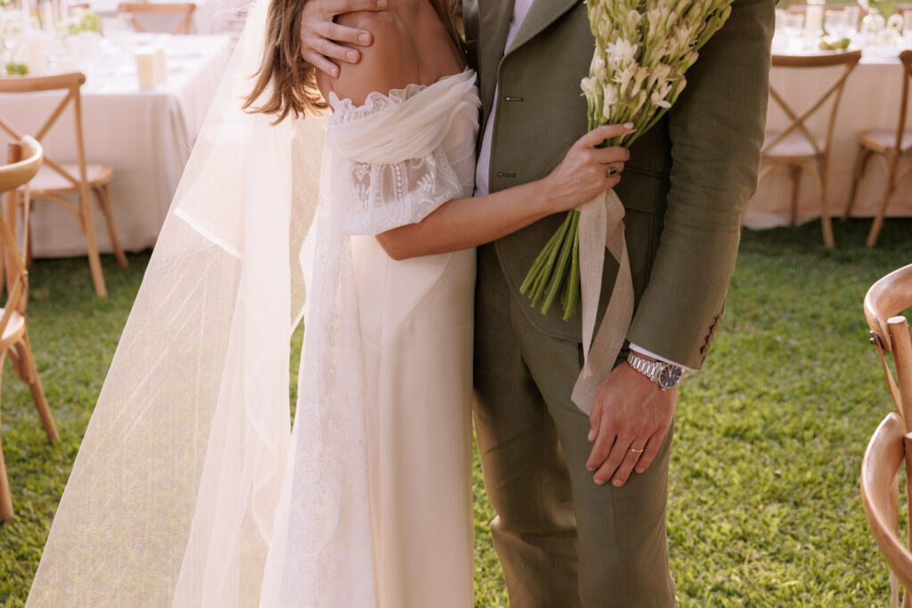 La ceremonia al aire libre fue tranquila, muy cercana. De las que no necesitan grandes gestos para sentirse. Miradas, silencios, pequeños momentos que van pasando casi sin darte cuenta, pero que se quedan.