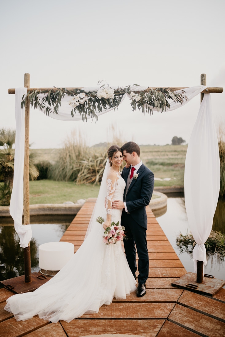 Con la magia de la primavera, el tiempo nos acompañó y la boda fue al aire libre con una ceremonia civil. Los novios se situaron en medio de un precioso lago, donde tuvo lugar el enlace.