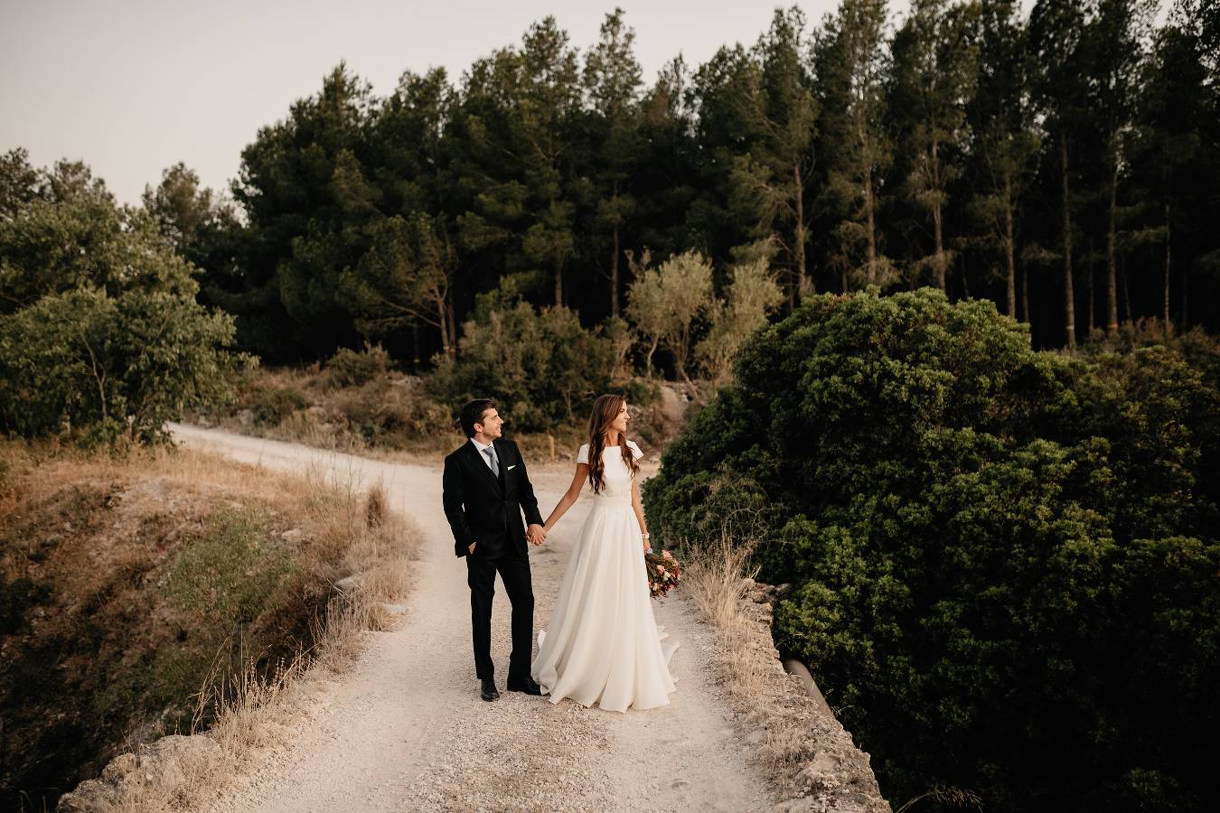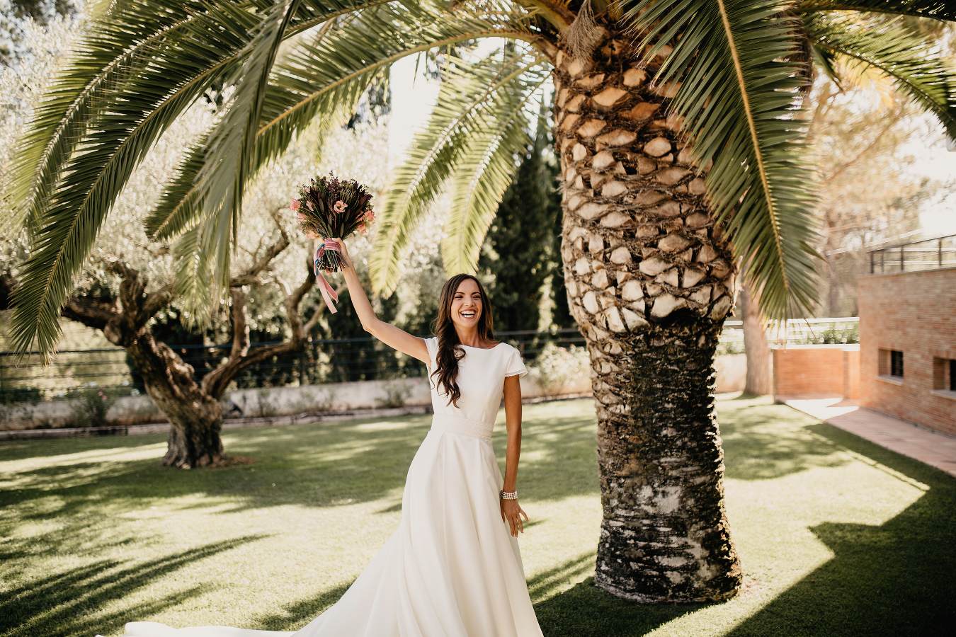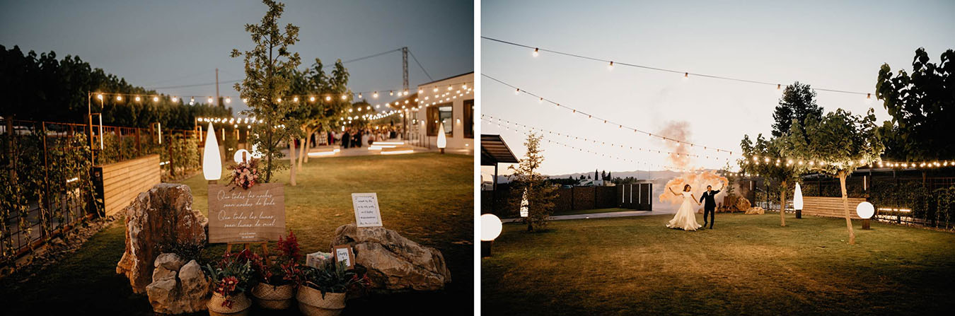 Antic Molí es un fantástico espacio, acogedor y con unos maravillosos jardines al lado del río Senia, a las afueras de Tarragona. Prácticamente es el último antes de llegar a la Comunidad Valenciana. Sus exclusivos jardines fueron los encargados de recibir a los invitados de la boda de Cristina y Cristian, por cierto, una entrada espectacular con humos de colores!