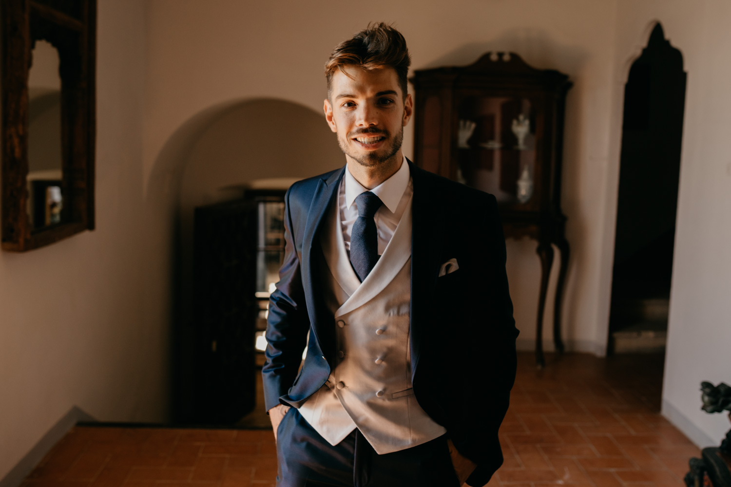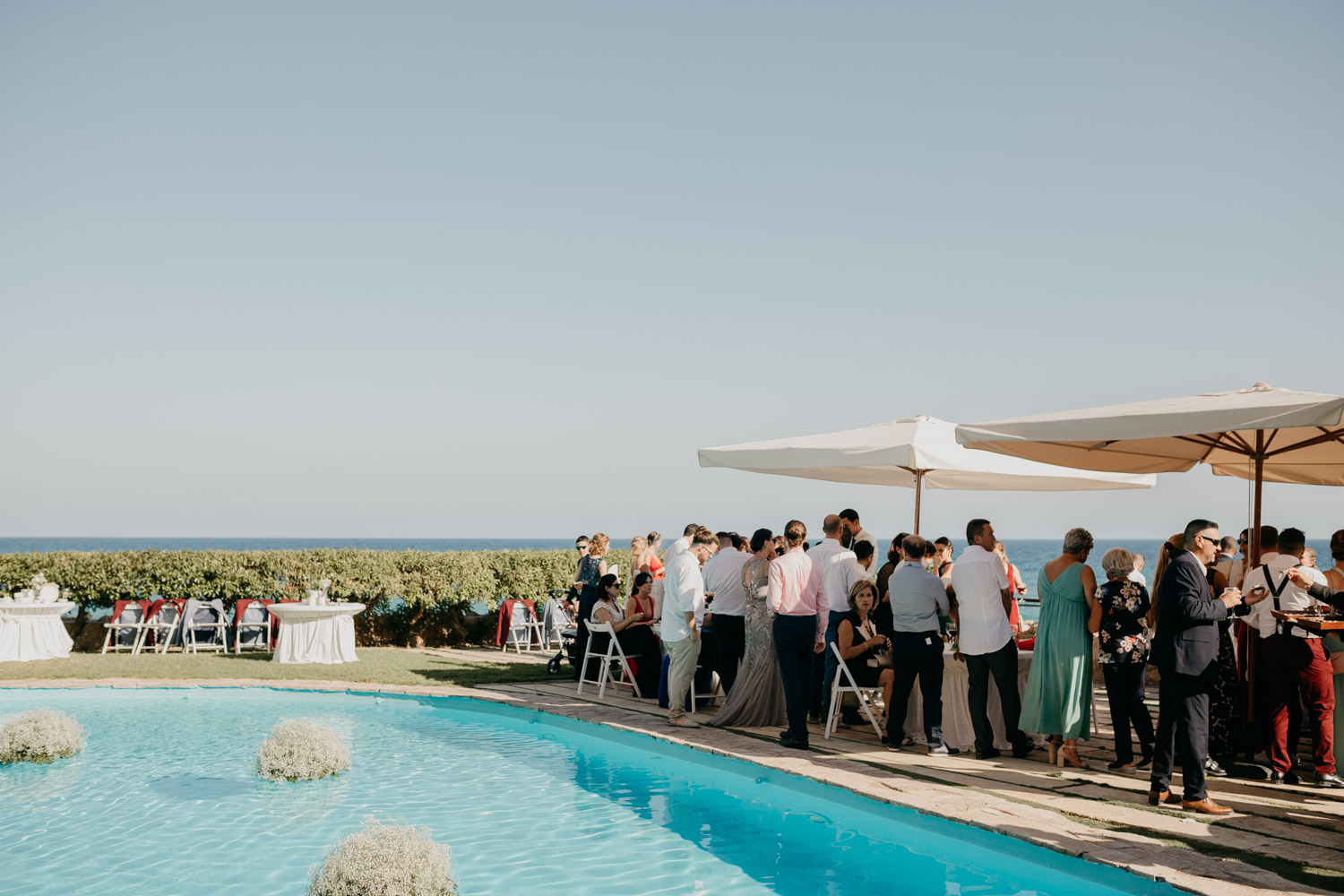 El aperitivo fue en la zona de la piscina frente al mar. Unas vistas increíbles del mar Mediterráneo en un entorno realmente privilegiado. Los amigos Andorranos de Enric nos esperaban, con ganas de una buena fiesta. La cena se celebró en el salón del Castillo. Un salón lleno de detalles y con una iluminación de cortinas de luces que nos encanta!