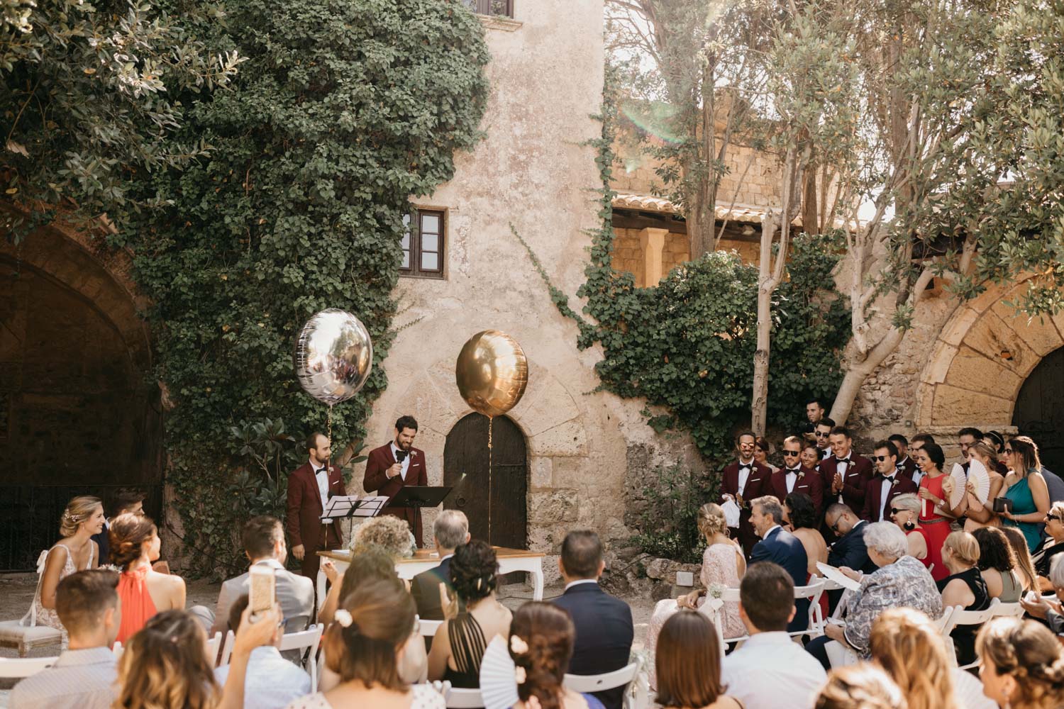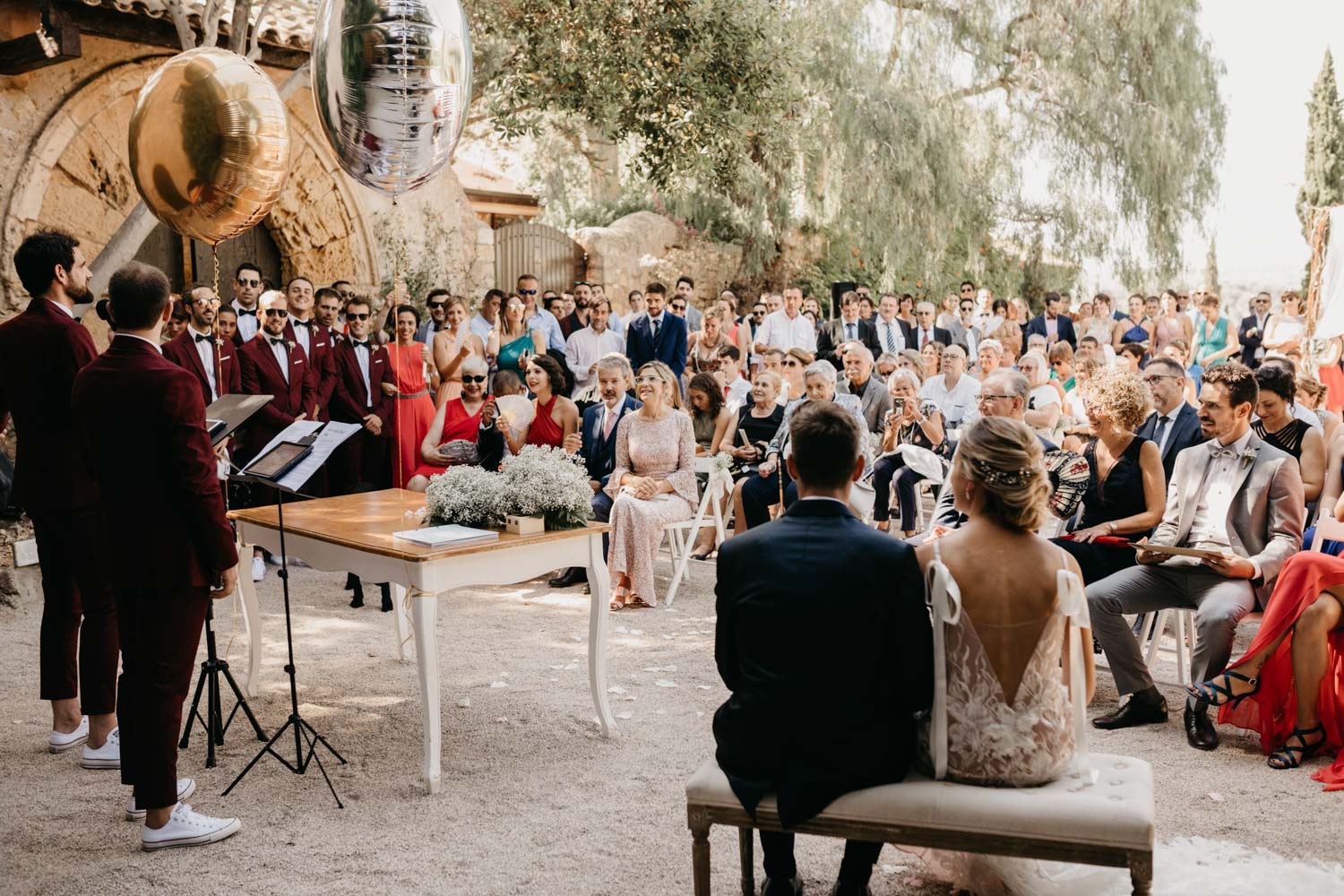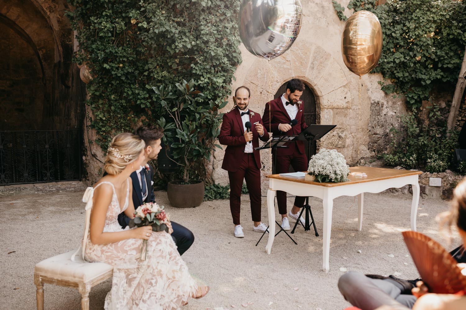 La ceremonia estuvo presidida por los amigos de los novios. Además de hacerla muy emotiva, le dieron el toque mágico para ir quitando los nervios previos, tanto de la pareja como de los padrinos.