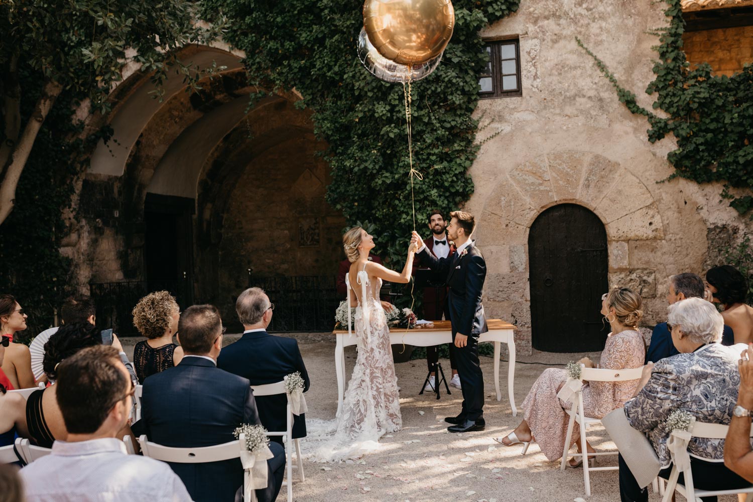 La boda de Enric & Claudia, fue al aire libre, una boda de tarde, delante de la capilla del Castillo. La otra opción de ceremonia civil en el Castillo es mirando al mar, una auténtica pasada!