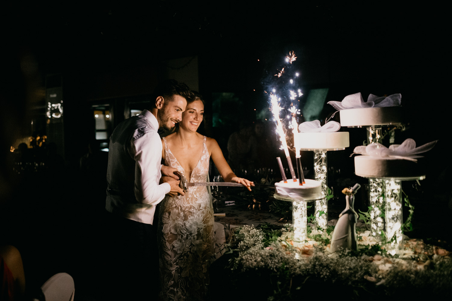 Sorpresas durante la cena, vítores, aplausos, risas y también alguna lágrima nos acompañaron durante la noche. Pero todo eso fue solo el preámbulo, para después dar paso a la fiesta. Presidida por el baile nupcial y seguido de toda la energía de las familias y amigos que aguantaron toda la noche.