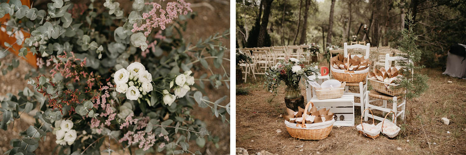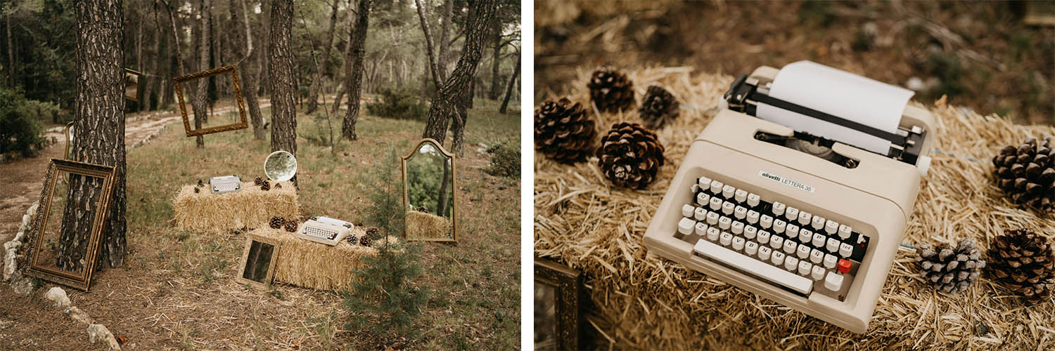 Marta y David decidieron hacer su ceremonia en medio del bosque del Castell Tallat. Fue que todo un acierto. Un ambiente muy mágico, natural y con una decoración vintage que dió un toque único a la ceremonia. Toda la masía estaba llena de detalles que nos dió mucho juego a la hora de hacer las fotos.