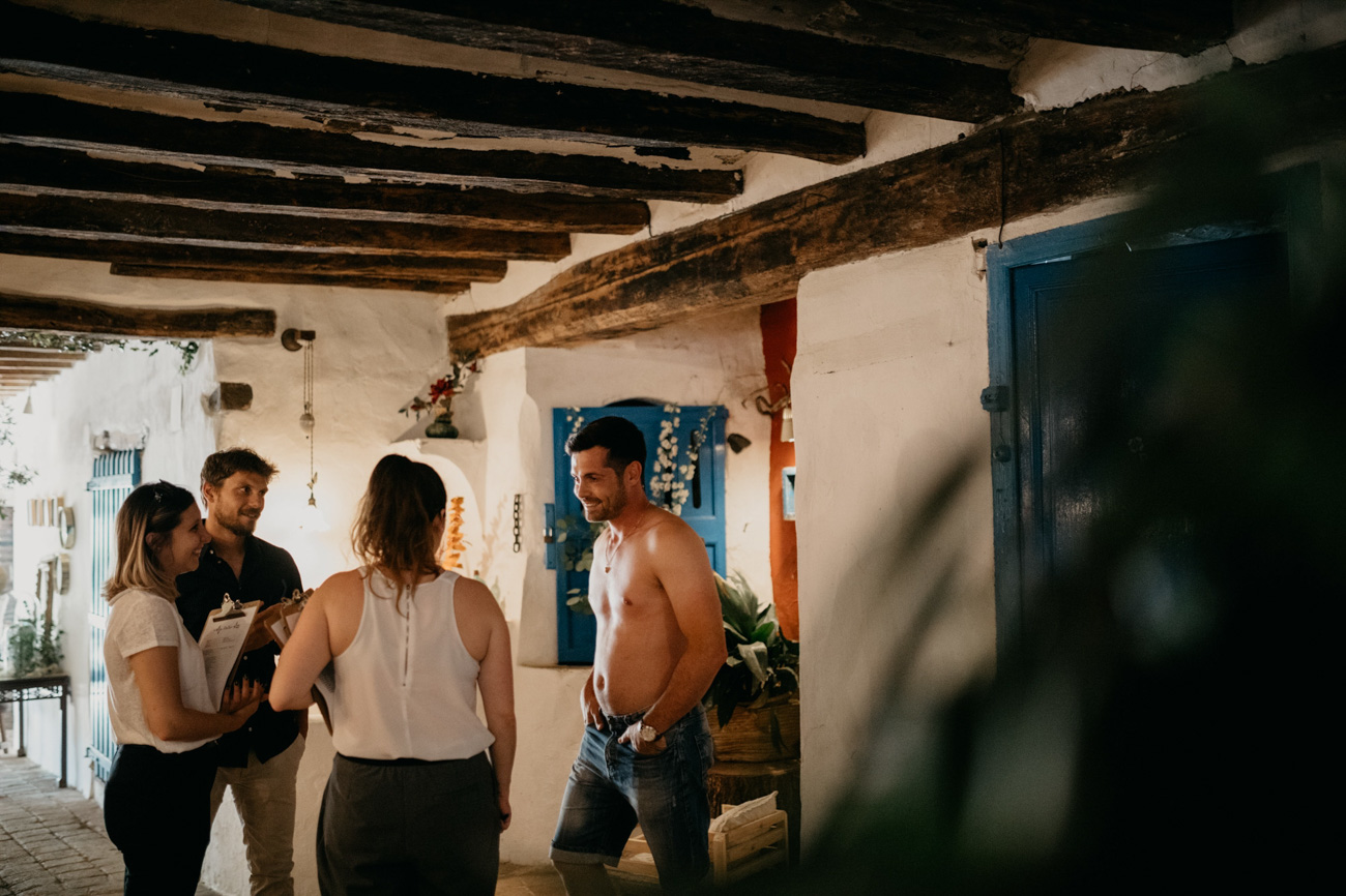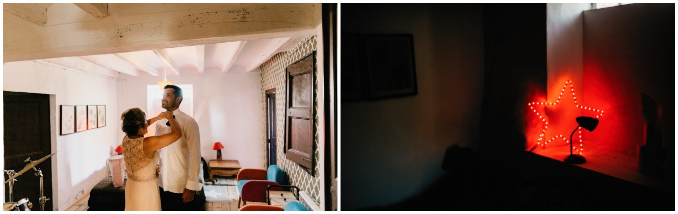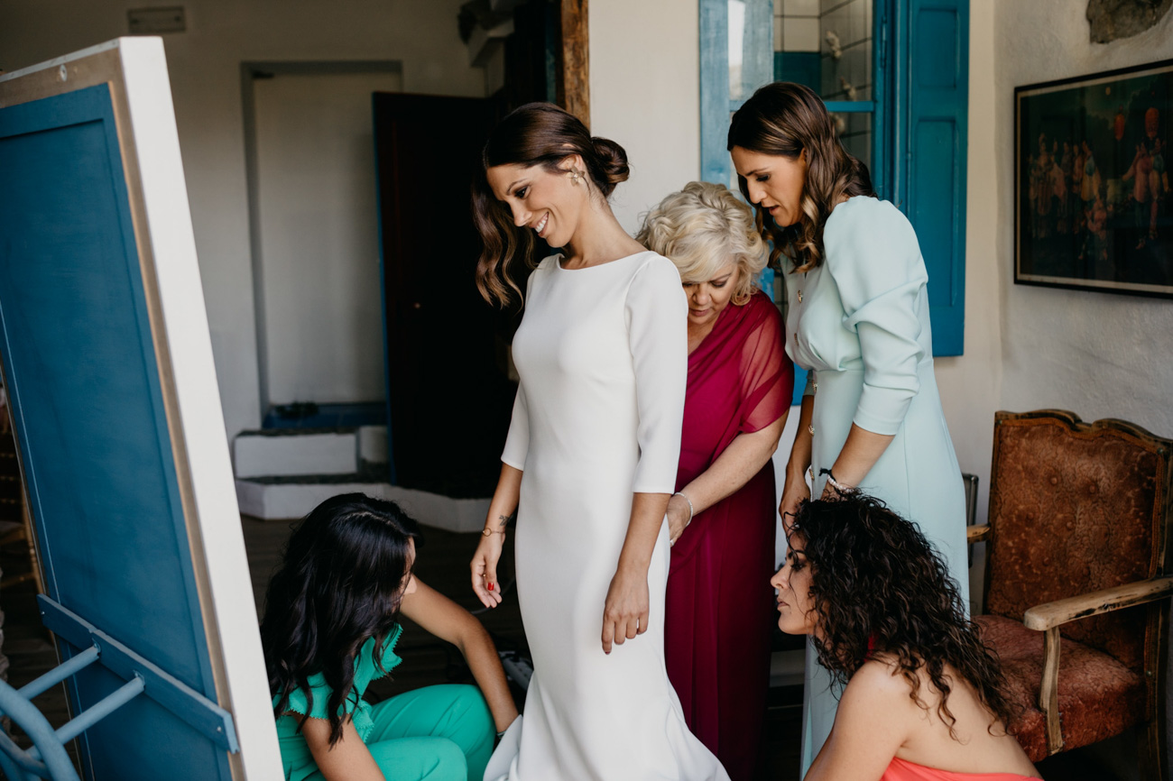 La masía de L’Avellana se convirtió en el lugar perfecto para reunir a los protagonistas del evento. Una casa de paredes azules y blancas al más puro estilo mediterráneo y que además está llena de detalles que fotografiar. Los nervios y las sonrisas se mezclan para dar lugar a fotos llenas de naturalidad.
