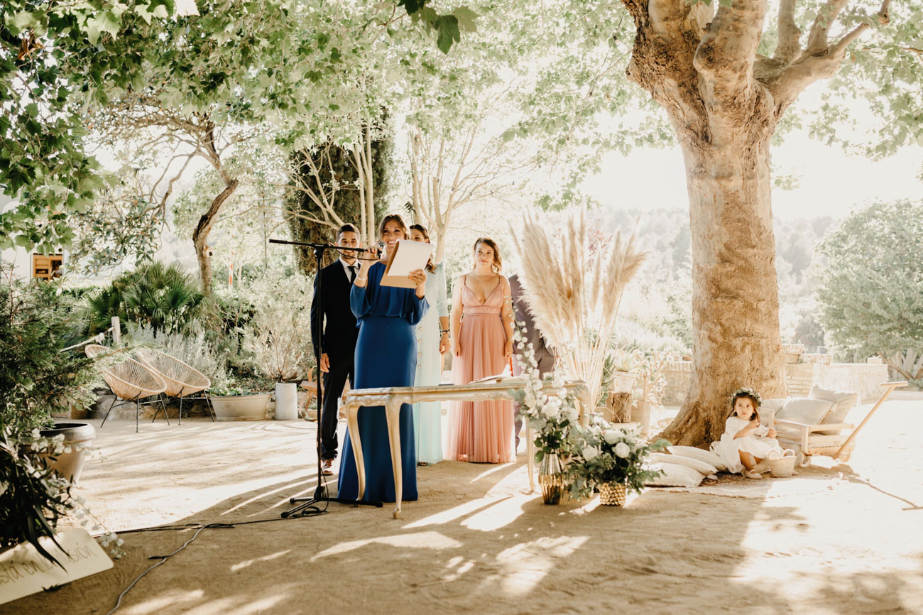 La ceremonia se celebró en la zona de los árboles, ya he mencionado que la decoración en L’Avellana está siempre muy cuidada, y en este momento especial donde los novios iban a darse el SÍ QUIERO, no fué menos. Una decoración que se mezcló con el entorno y unos invitados que nos emocionaron a todos.