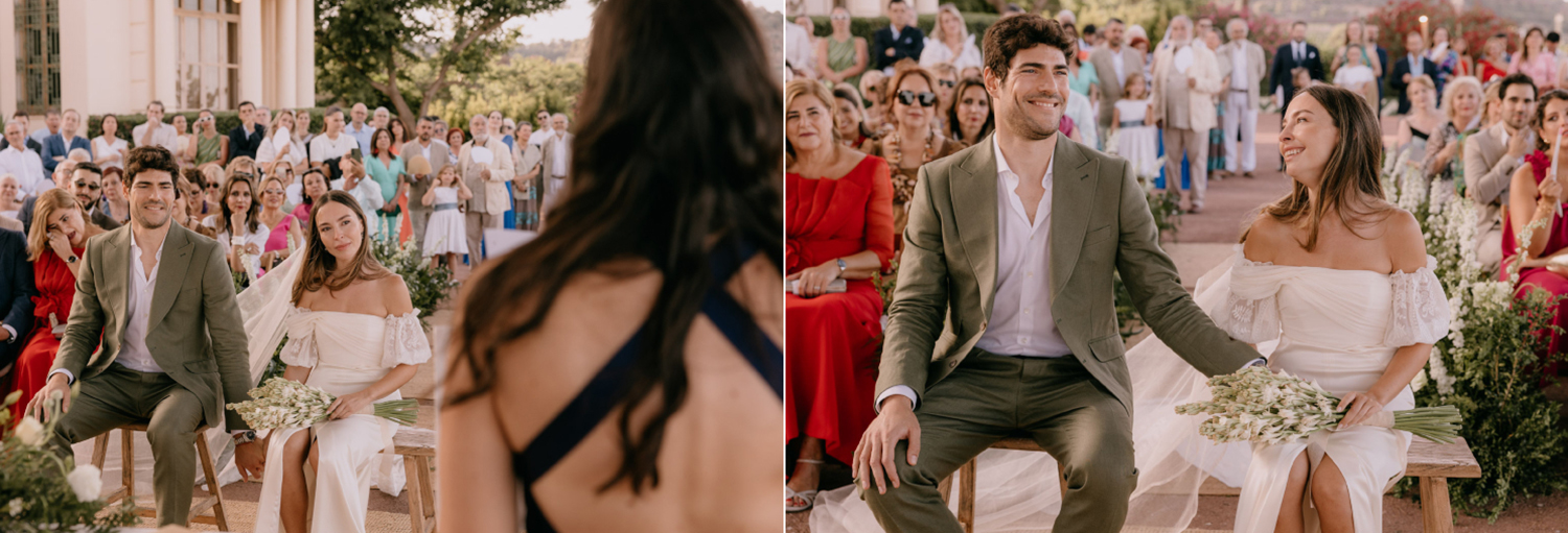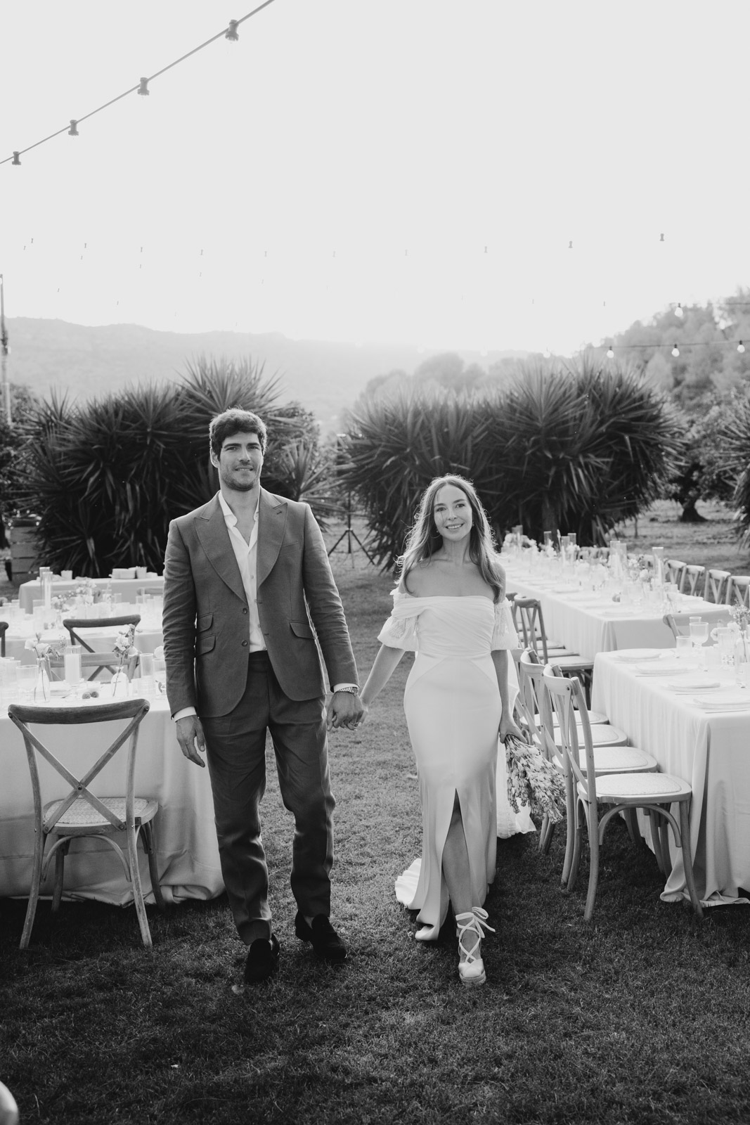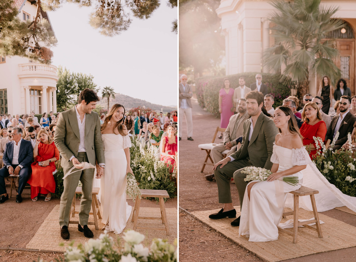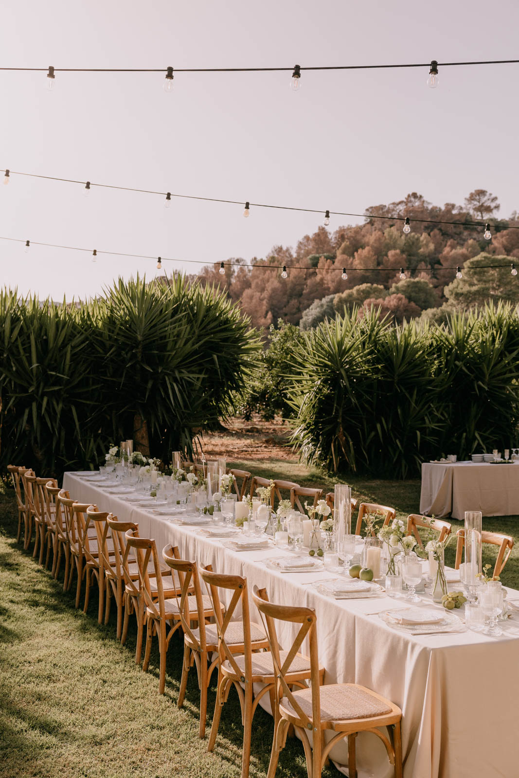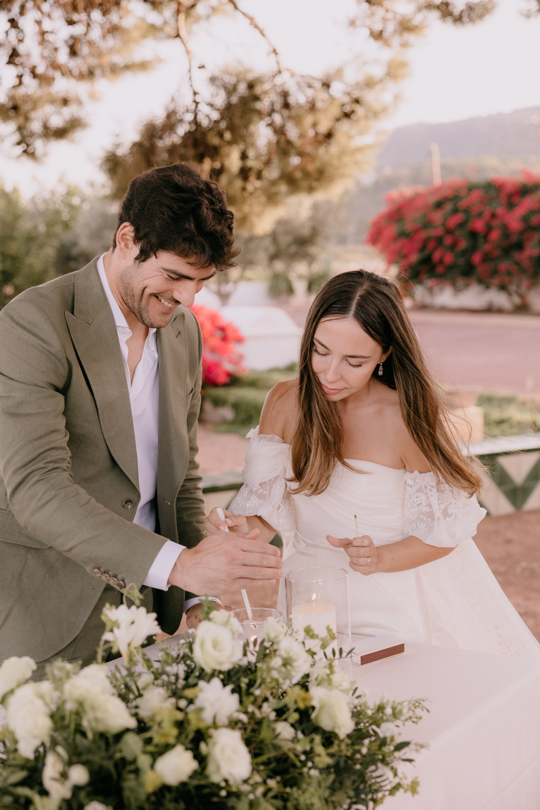 La ceremonia al aire libre fue un momento de profunda emoción, con Blanca y Adi intercambiando votos rodeados de la espléndida naturaleza de Mas les Lloses. Las palabras llenas de amor y los gestos tiernos resonaron en cada rincón, capturando la esencia de su conexión.