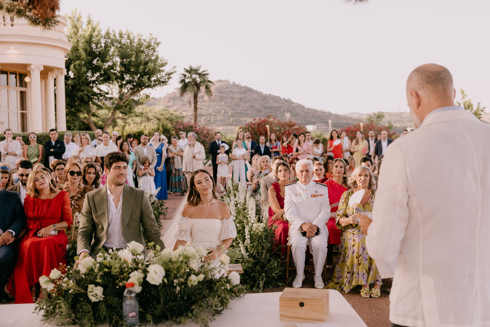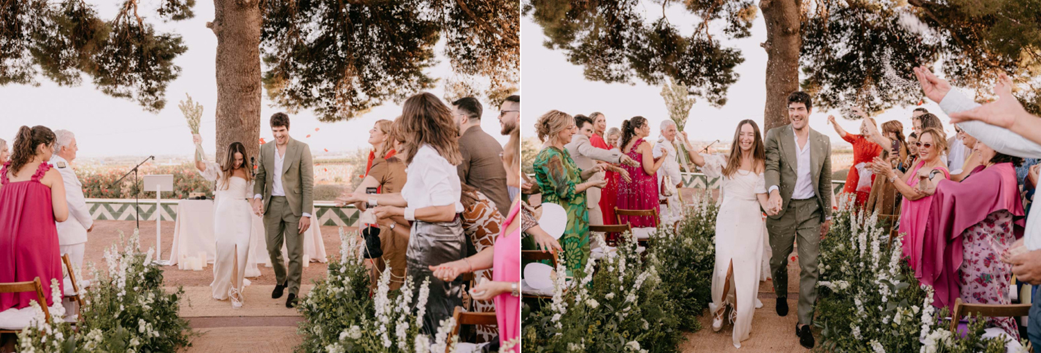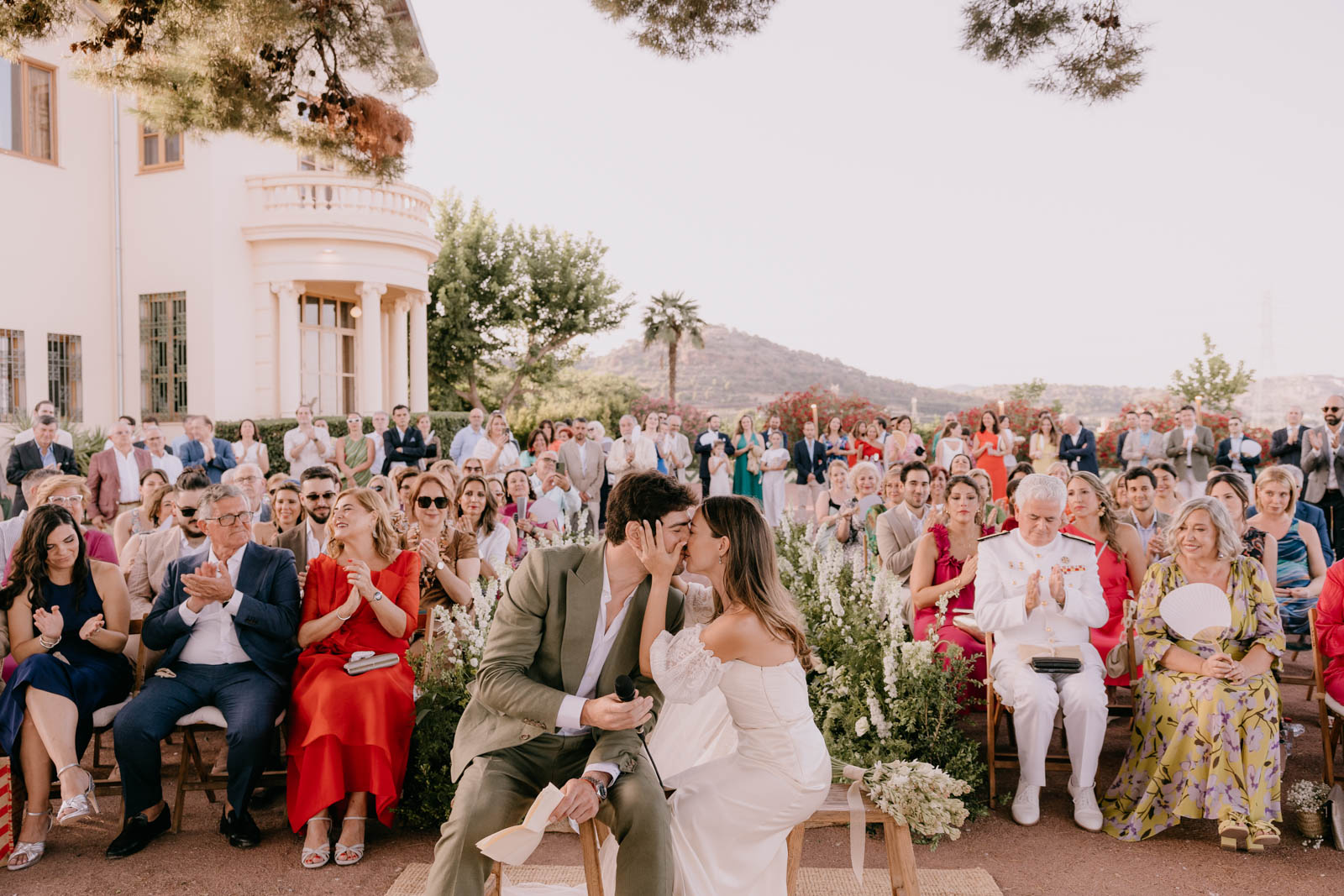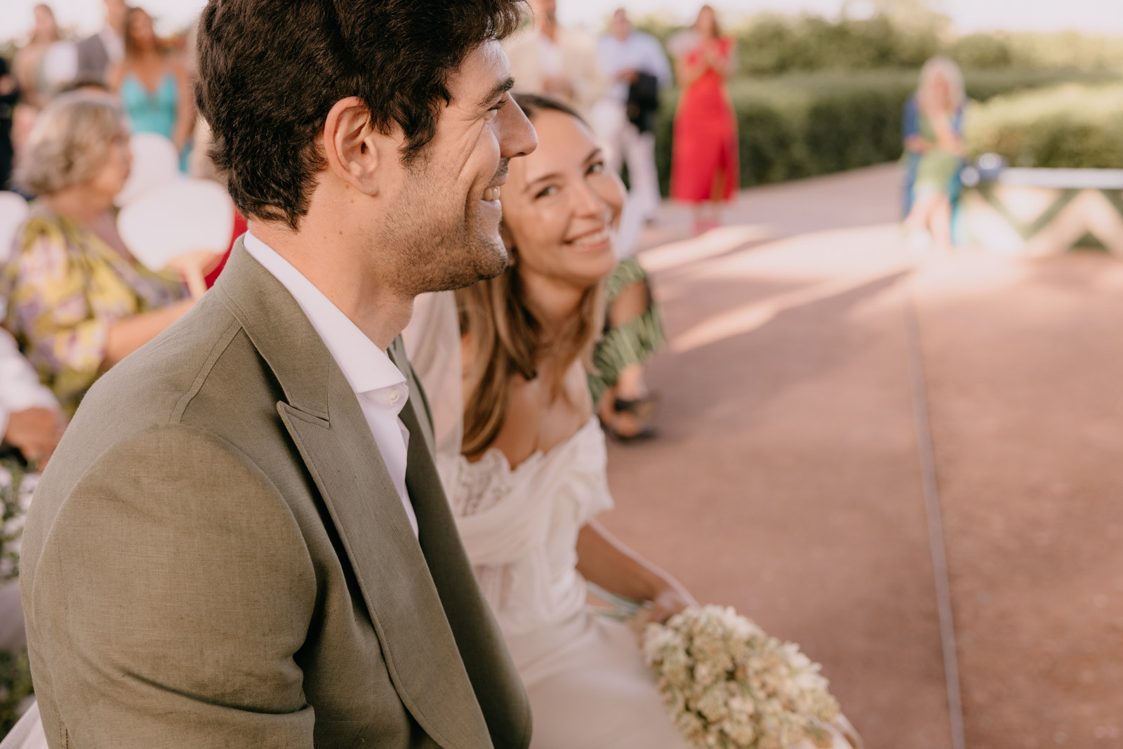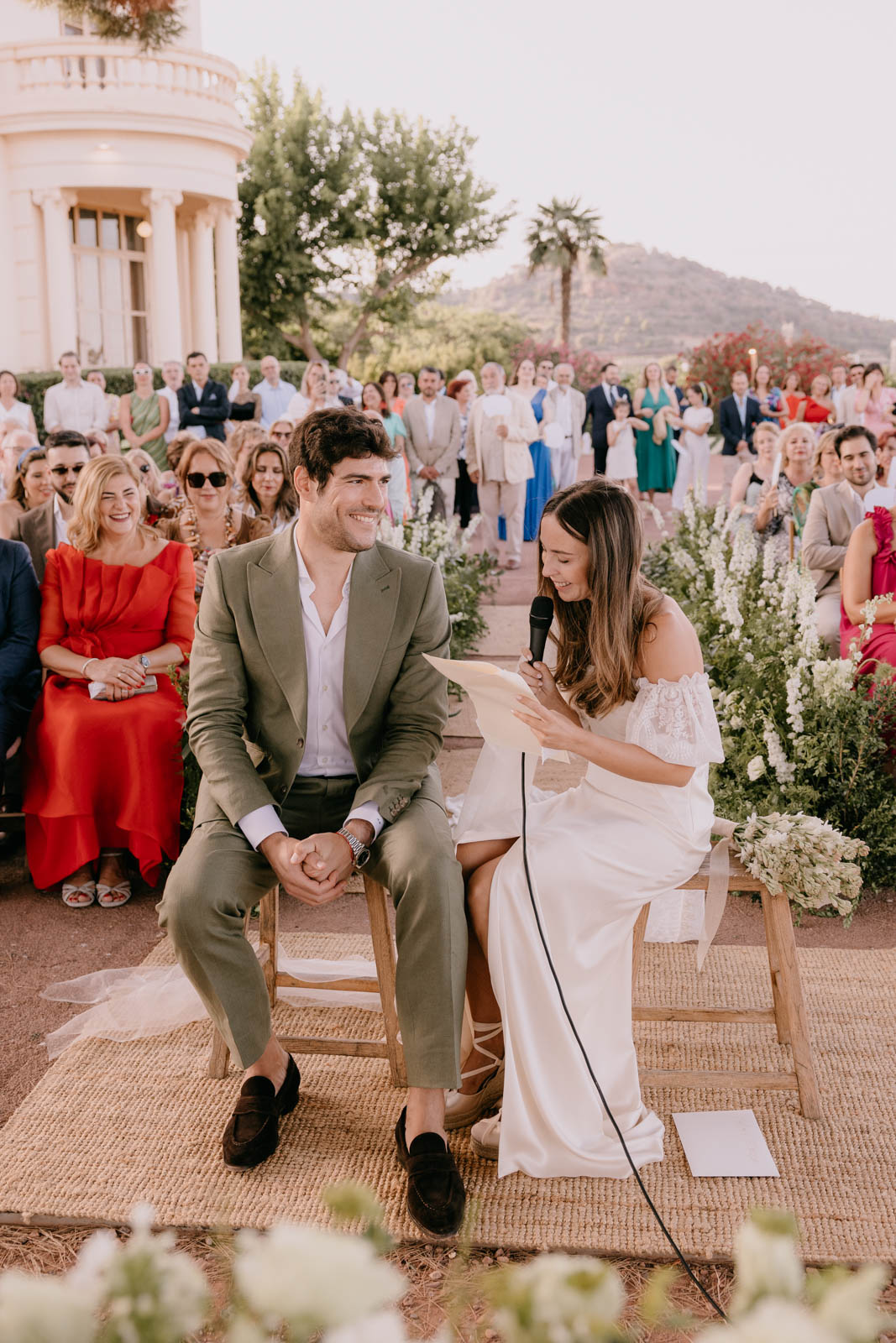 La ceremonia al aire libre fue un momento de profunda emoción, con Blanca y Adi intercambiando votos rodeados de la espléndida naturaleza de Mas les Lloses. Las palabras llenas de amor y los gestos tiernos resonaron en cada rincón, capturando la esencia de su conexión.