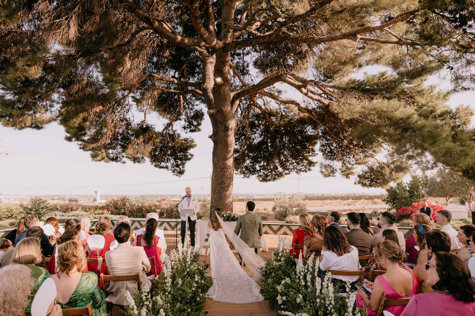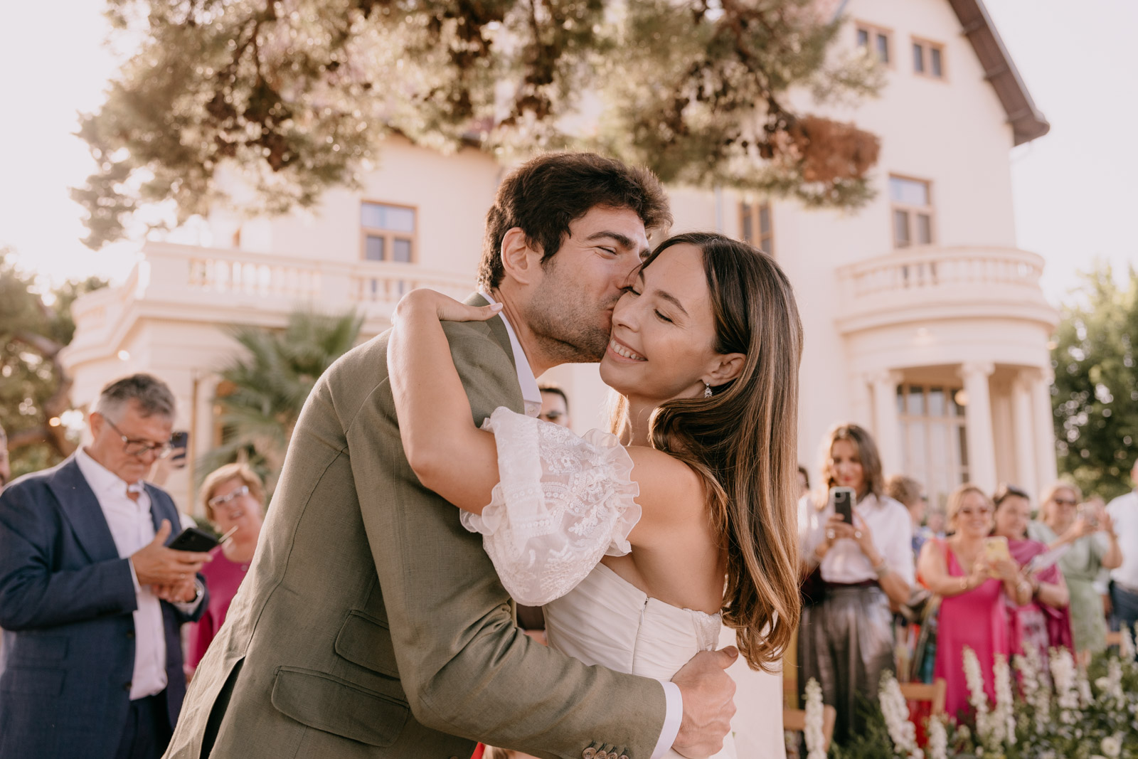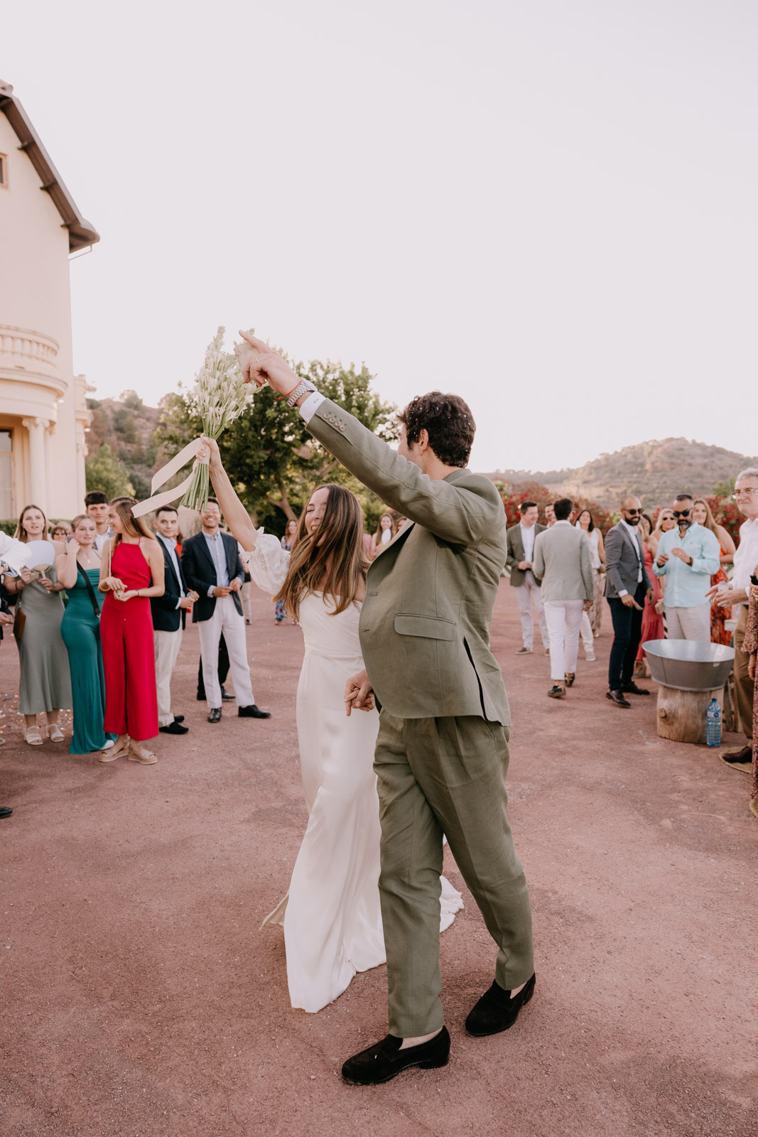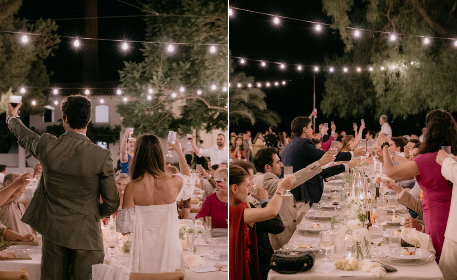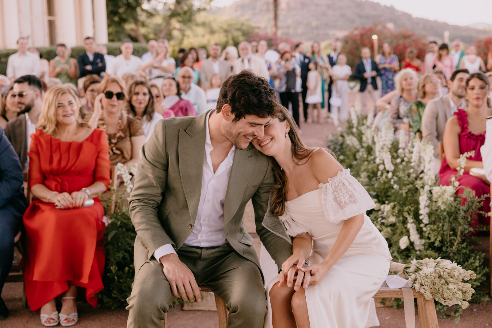 La ceremonia al aire libre fue un momento de profunda emoción, con Blanca y Adi intercambiando votos rodeados de la espléndida naturaleza de Mas les Lloses. Las palabras llenas de amor y los gestos tiernos resonaron en cada rincón, capturando la esencia de su conexión.