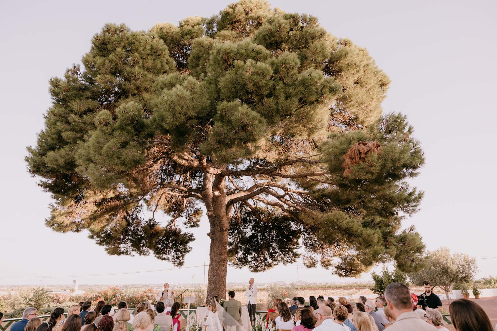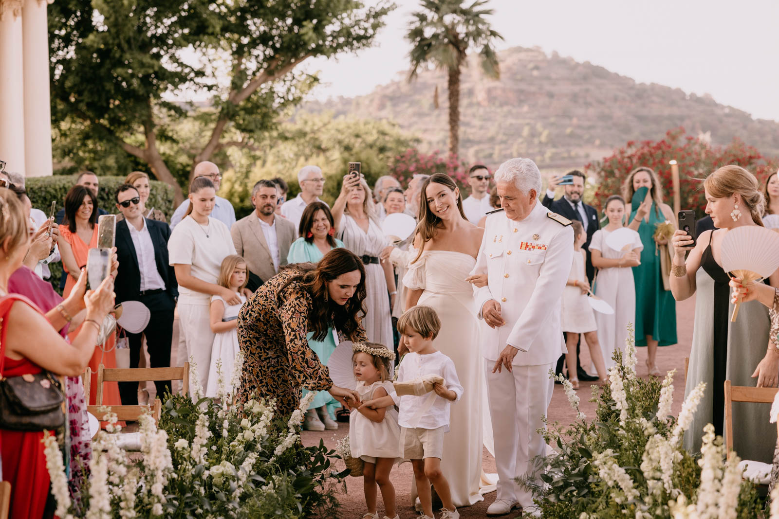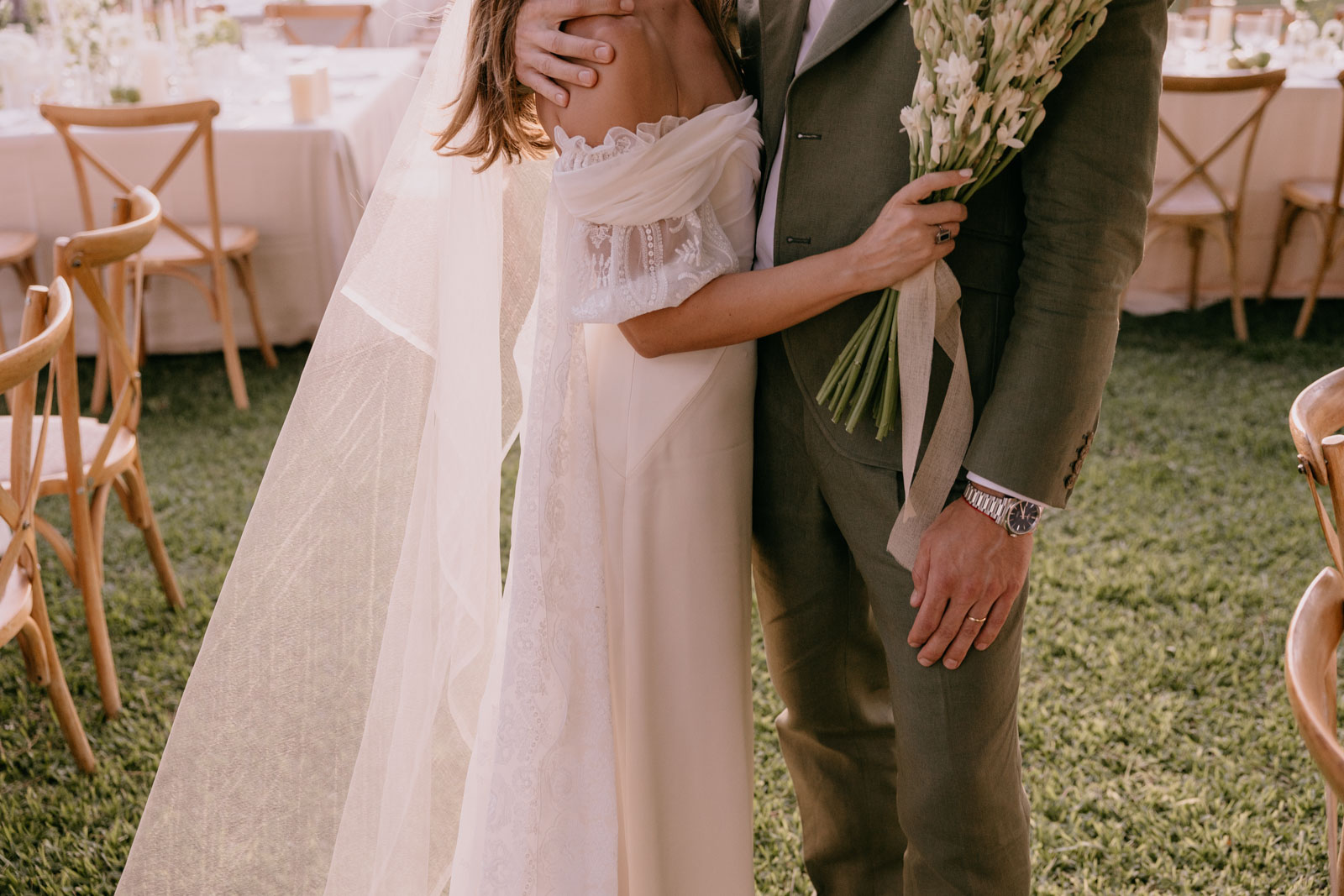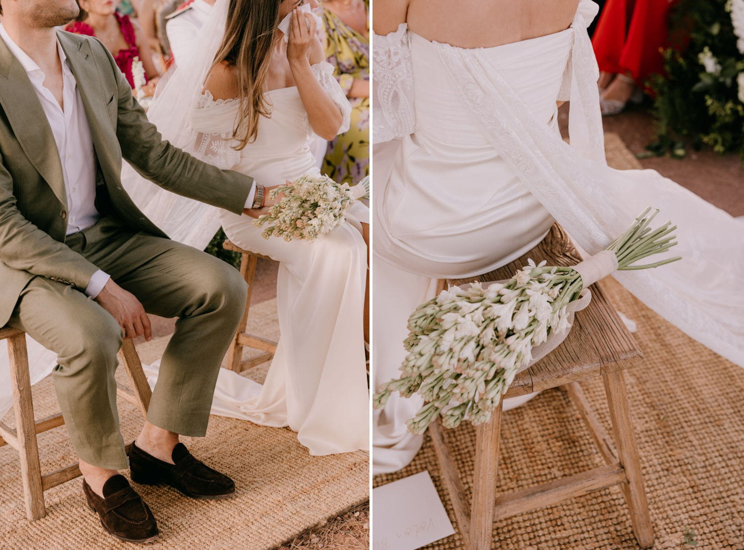 La ceremonia al aire libre fue un momento de profunda emoción, con Blanca y Adi intercambiando votos rodeados de la espléndida naturaleza de Mas les Lloses. Las palabras llenas de amor y los gestos tiernos resonaron en cada rincón, capturando la esencia de su conexión.