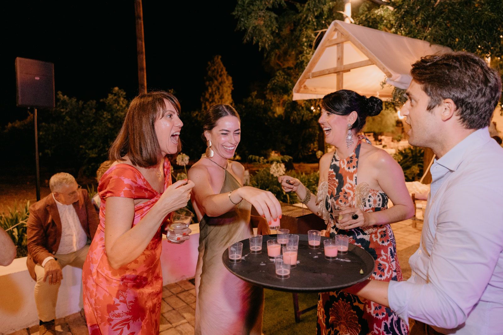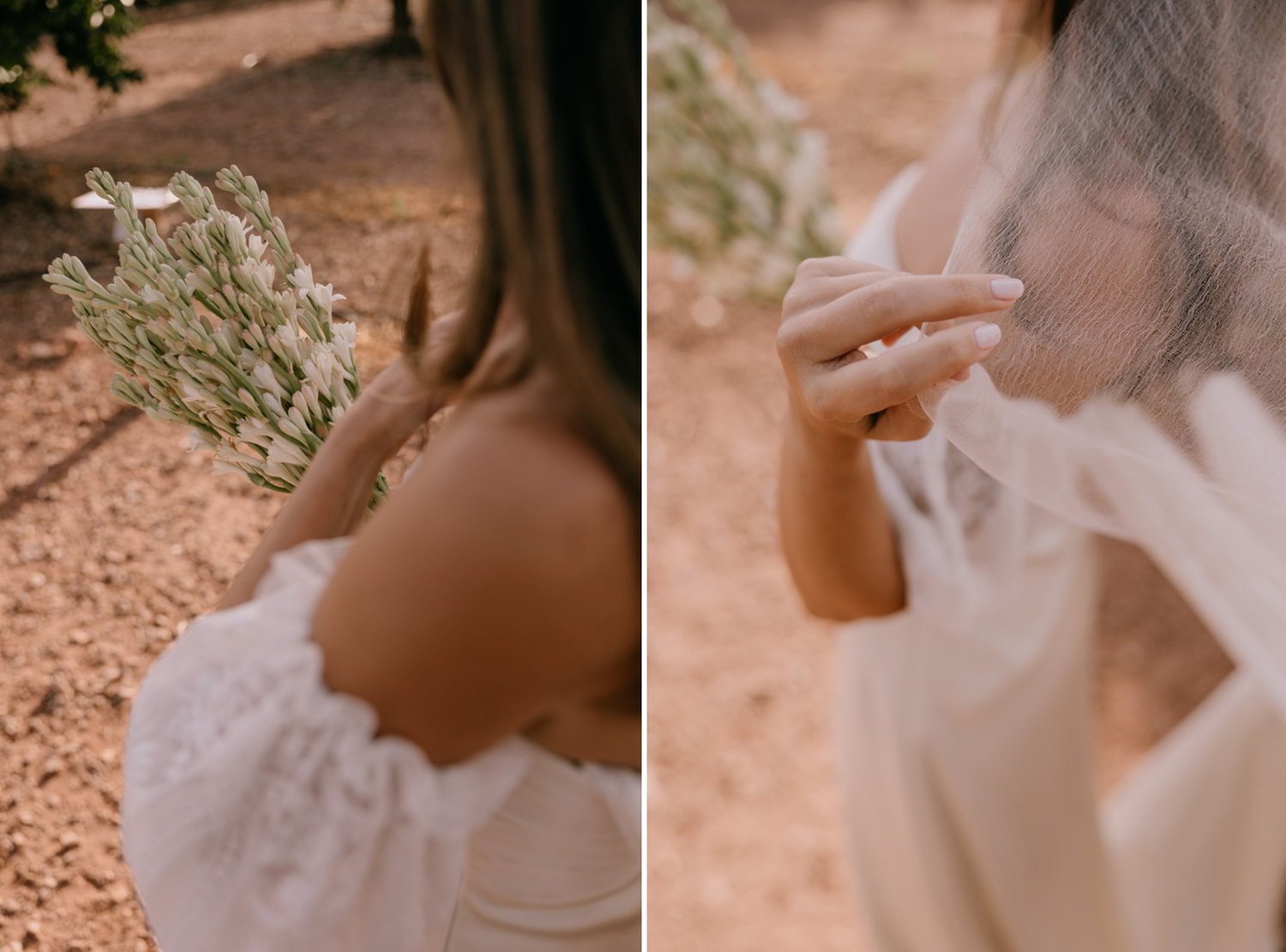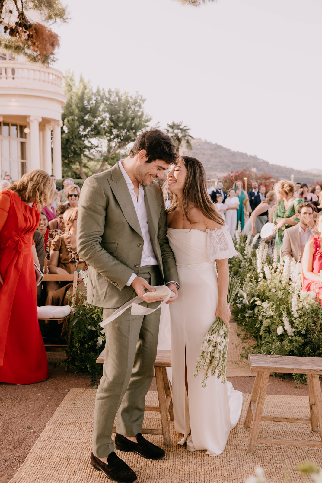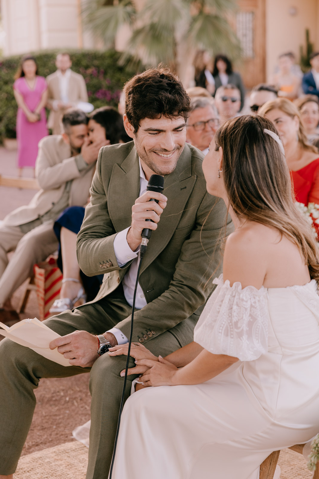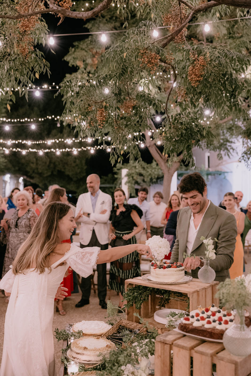 La ceremonia al aire libre fue un momento de profunda emoción, con Blanca y Adi intercambiando votos rodeados de la espléndida naturaleza de Mas les Lloses. Las palabras llenas de amor y los gestos tiernos resonaron en cada rincón, capturando la esencia de su conexión.