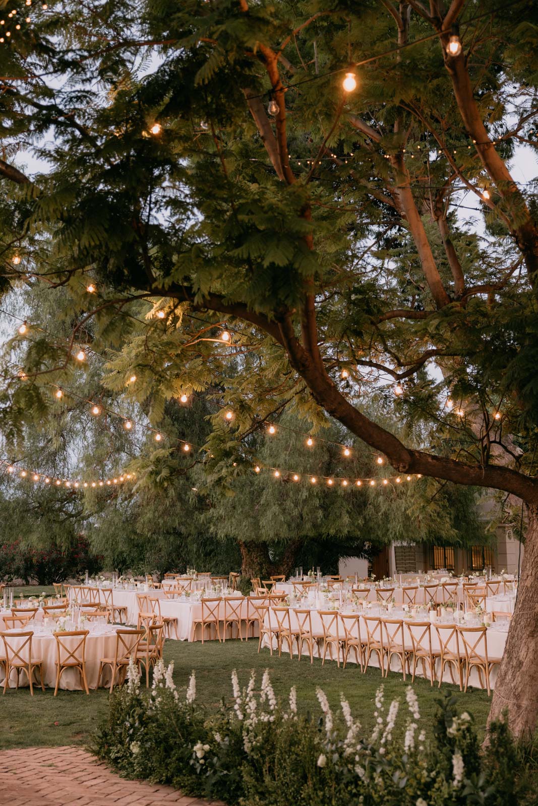 La celebración continuó en los jardines, donde los invitados disfrutaron de una velada bajo las estrellas. Fue el final perfecto para una boda que combinó belleza, elegancia y amor en cada detalle.