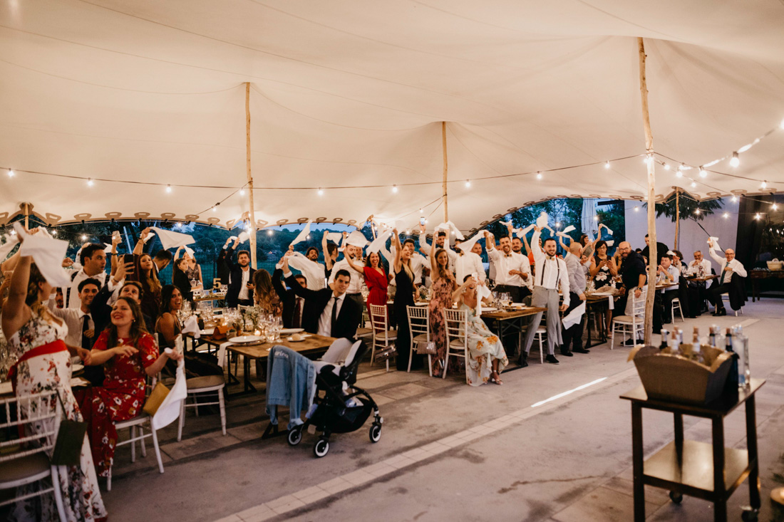 Toda la boda fué al aire libre, tanto la ceremonia como el banquete y por supuesto, la fiesta. Para la cena se montó una enorme carpa con luces donde no faltó ningún detalle. Todo fue cuidado y mimado al máximo.