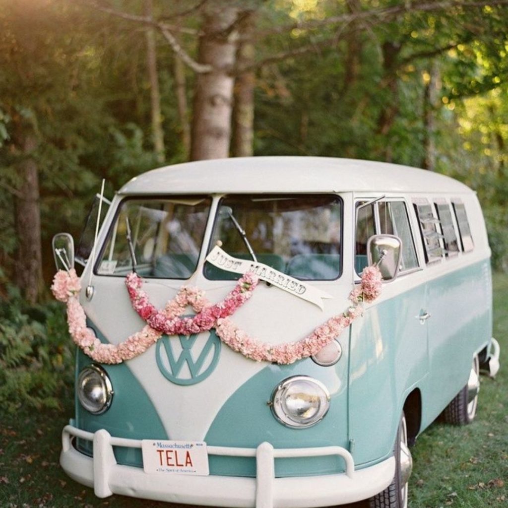 Un Volkswagen Beatle o un Fiat 500 en su versión clásica son dos coches para bodas que estuvieron de moda en los años 50 y 60 y que vuelven a estar en el punto de mira de muchas parejas. Si lo decoras con flores la elección no podrá ser más divertida y acertada.