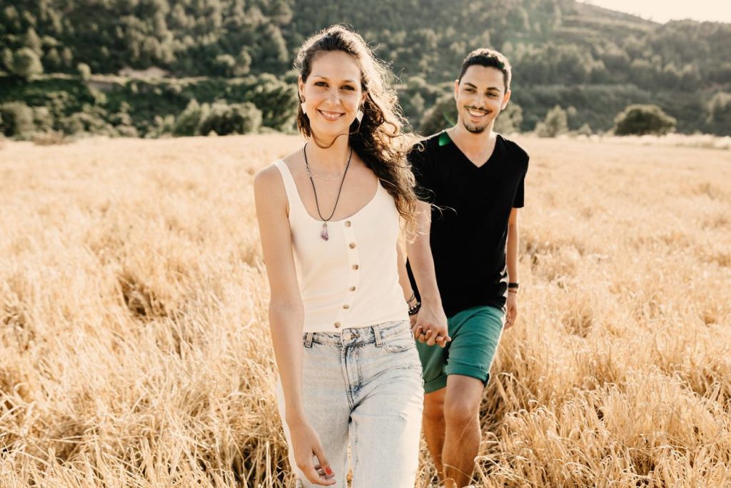 Después de las fotos en casa teníamos mirados unos exteriores muy guays, uno tipo campos de trigo y otro más verde que combinan muy guay con la ropa que llevaban. Lo guay de los prebodas en Lleida es que tenemos campos de trigo por todos lados! jeje
