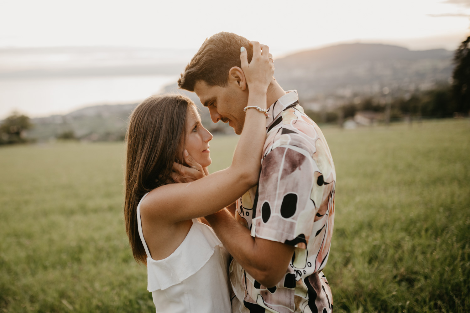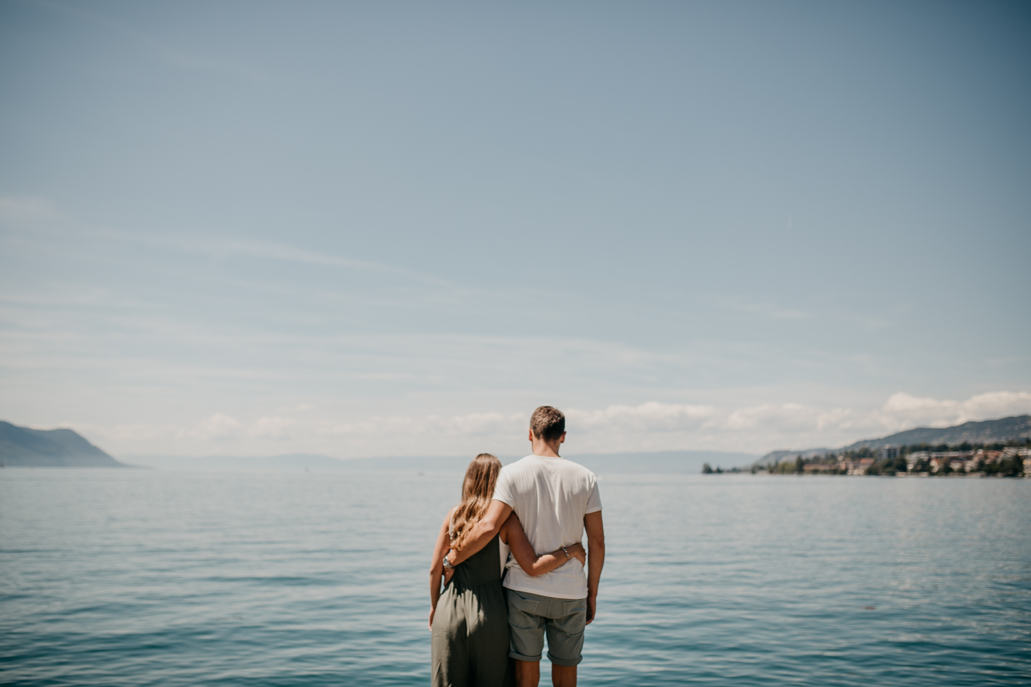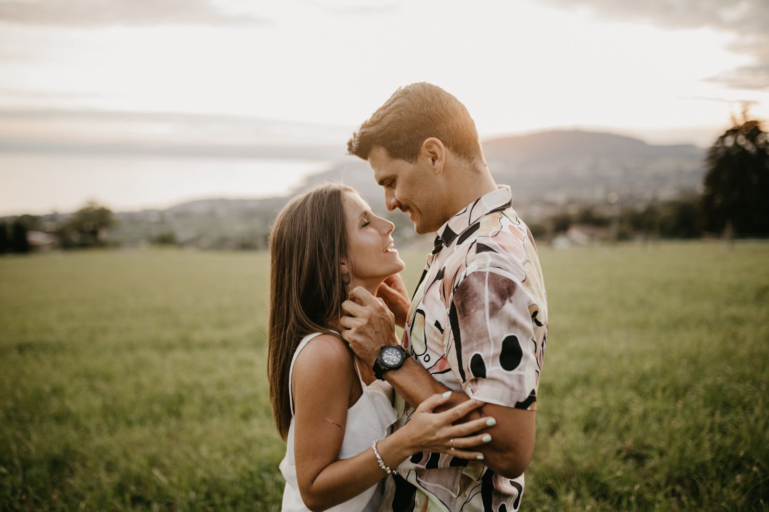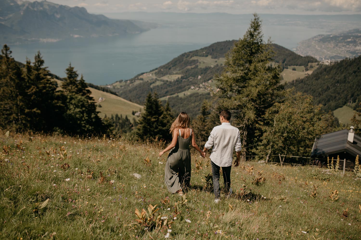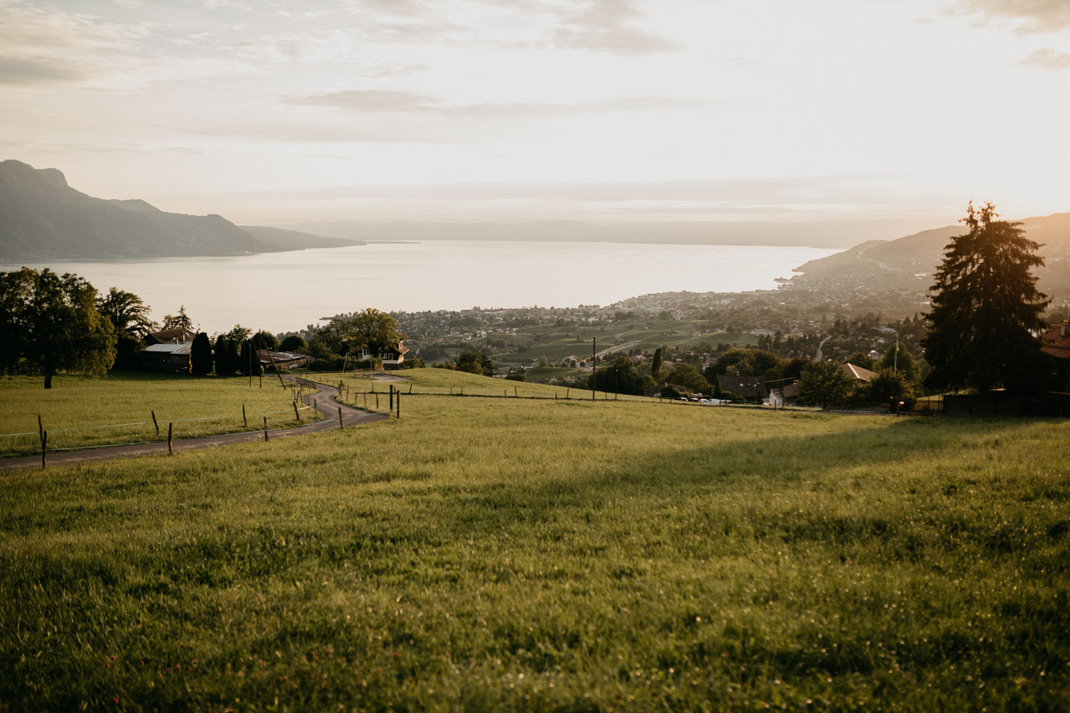 Para el reportaje fuimos hasta la zona de Montaña de Montreux, en los Alpes berneses de Suiza. La naturaleza, el lago y el cielo se mezclaron con la naturalidad de la pareja. La complicidad entre los dos se refleja en cada fotografía y los votos, solo han hecho consolidar un compromiso y amor que se nota a leguas en cuanto conoces a Adriana y Esteve.