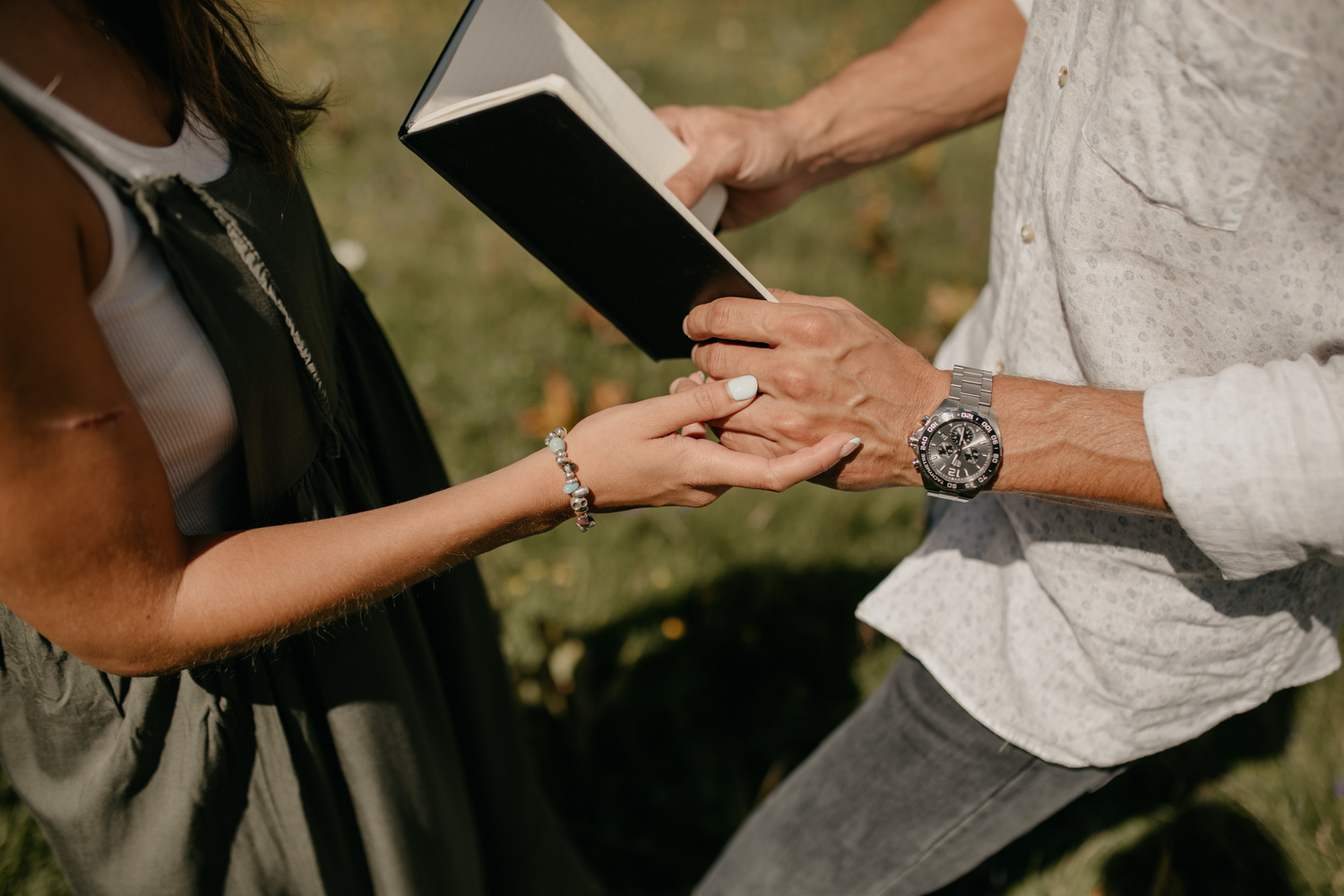 Dividimos el reportaje en dos. La primera parte en la montaña, donde se leyeron unas bonitas palabras y donde decidieron formalizar su compromiso, en la que aprovechamos toda la belleza de la naturaleza. La segunda parte, más desenfadada, nos divertimos mucho. Risas, juegos, cortinas de humo y hasta alguna carrera nos echamos. Esteve y Adriana son una pareja 10 que participaron y disfrutaron de la experiencia al 100%