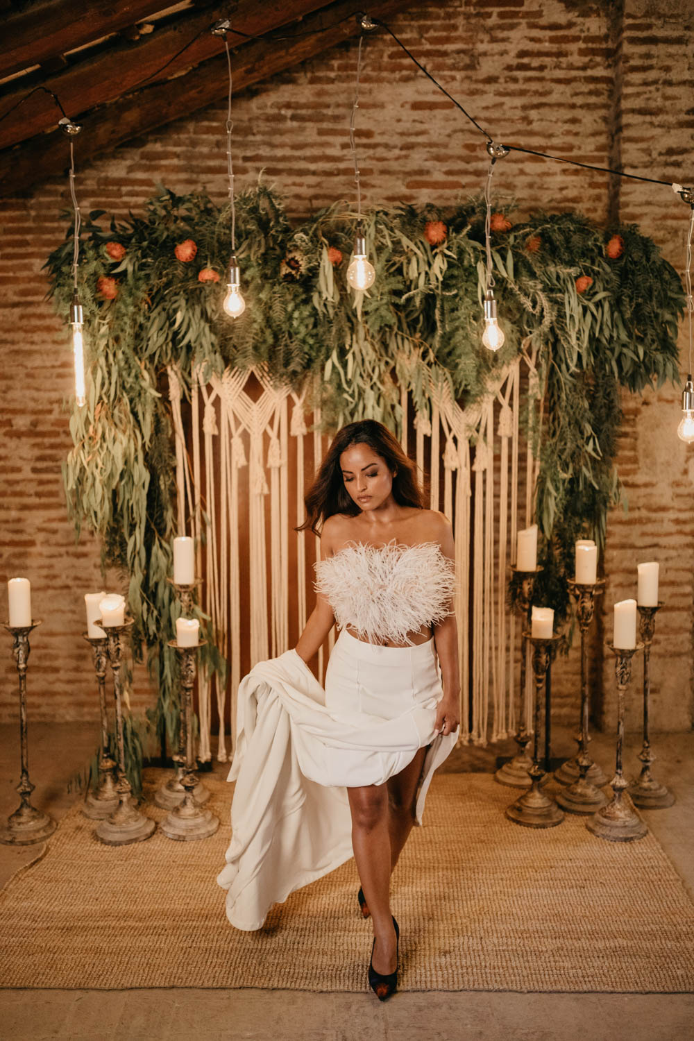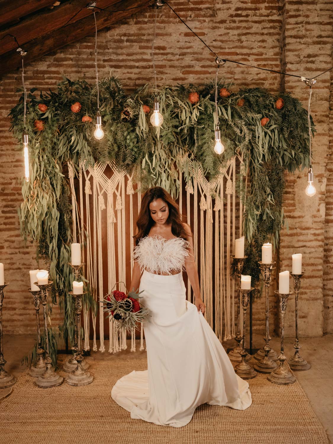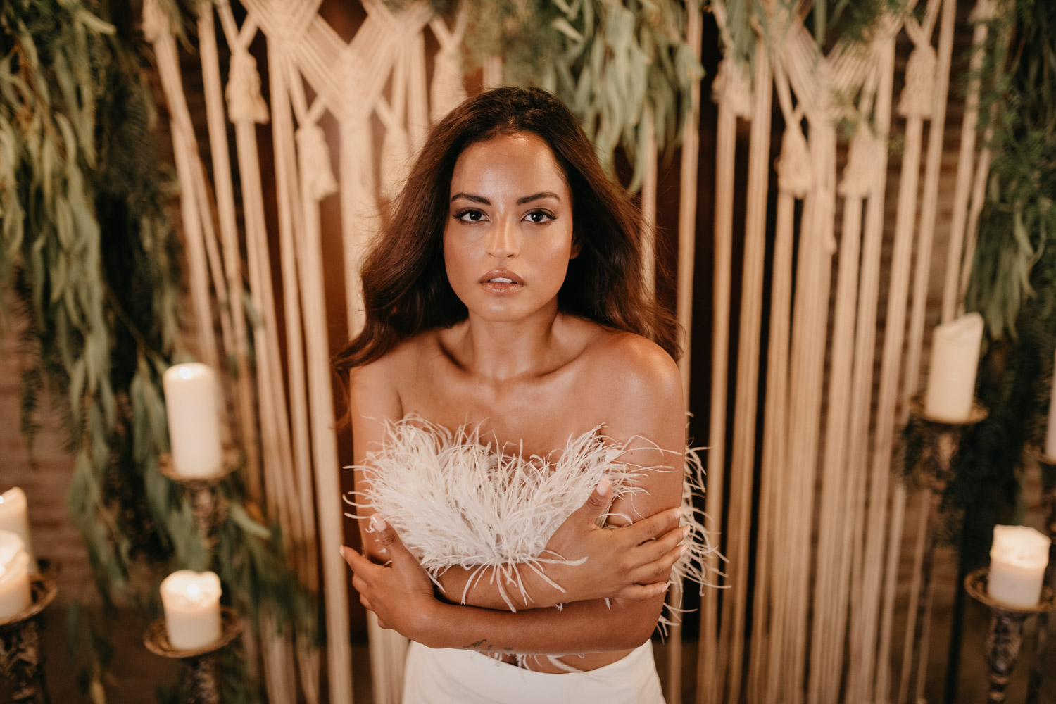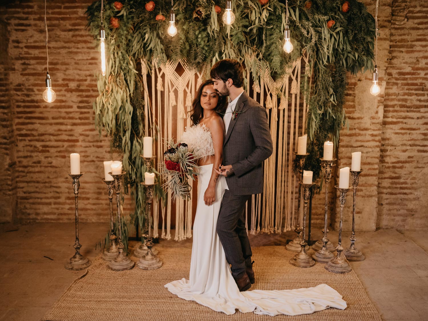 En esta nueva sesión fotográfica hemos querido mezclar la decoración Boho con un toque Rock. Crear un ambiente íntimo y muy sensual, donde capturar la complicidad y los momentos únicos de la pareja. Una sesión de boda intima donde los protagonistas son los novios. En un decorado donde la luz juega un papel fundamental para captar la pasión de los dos.