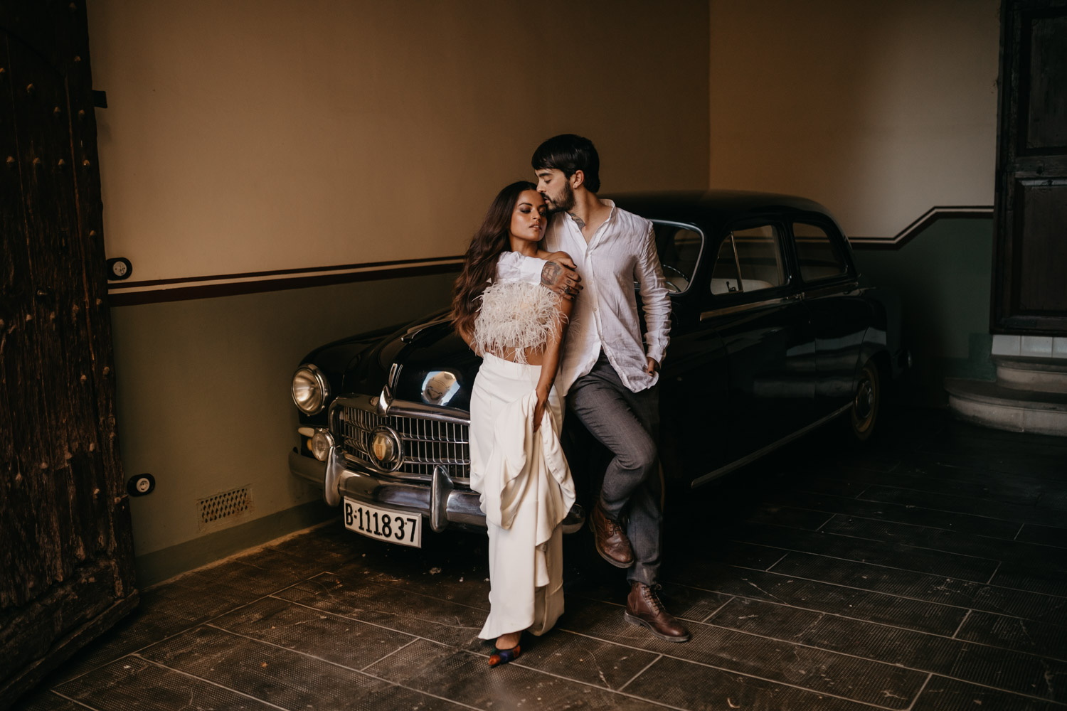 El tercer y último espacio es la guinda del pastel. Hemos querido recoger la esencia pura de los dos. No se necesita mucho más que un buen coche, en un espacio neutro. Un último decorado donde dejamos atrás las formalidades y nos centramos en que la pareja elija y se muestren como son.