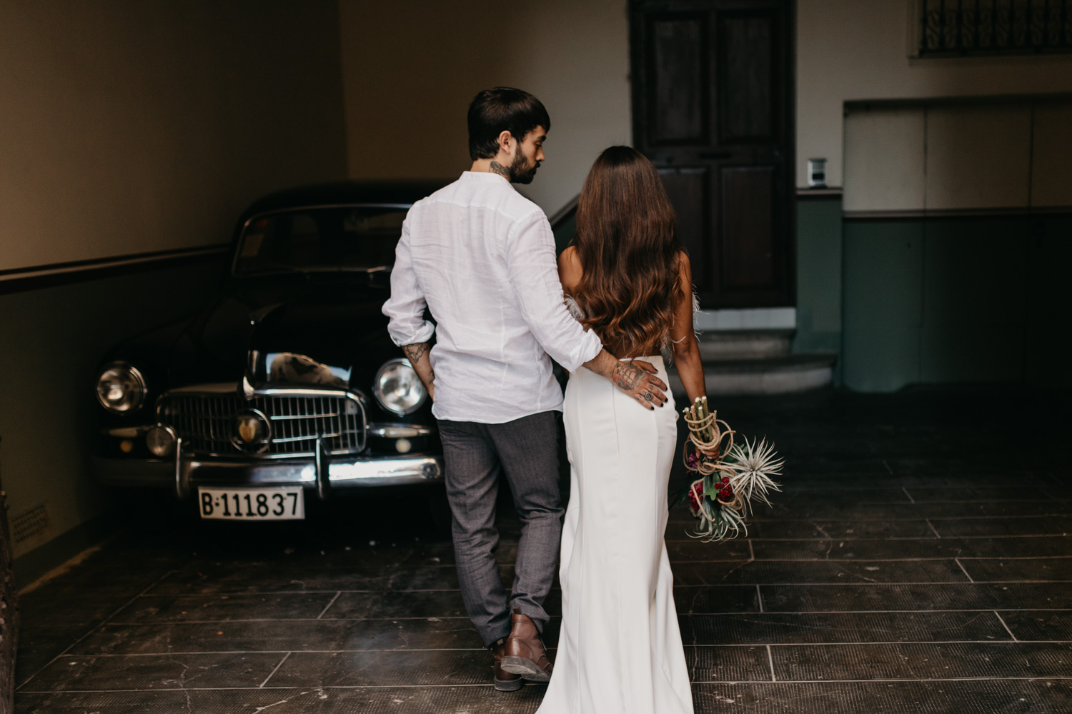 El segundo decorado, mucho más casual, un espacio para relajarse, dejar los nervios atrás y disfrutar de la sesión. Un espacio con toques rockeros, para parejas muy chic, frescas y desenfadadas. La luz natural, a pesar de estar en interior, juega un papel muy importante.